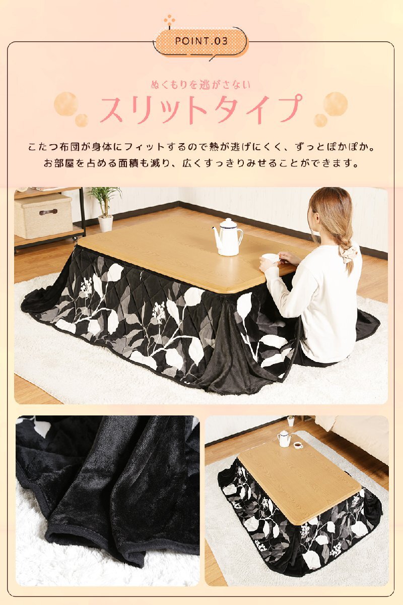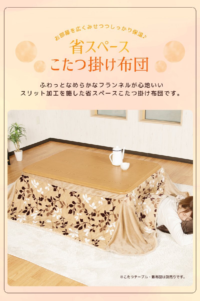 こたつ布団 掛け布団 80×120cm用 こたつ コタツ 長方形 フランネル 保温 あったか 省スペース スリットタイプ キルト加工 洗える