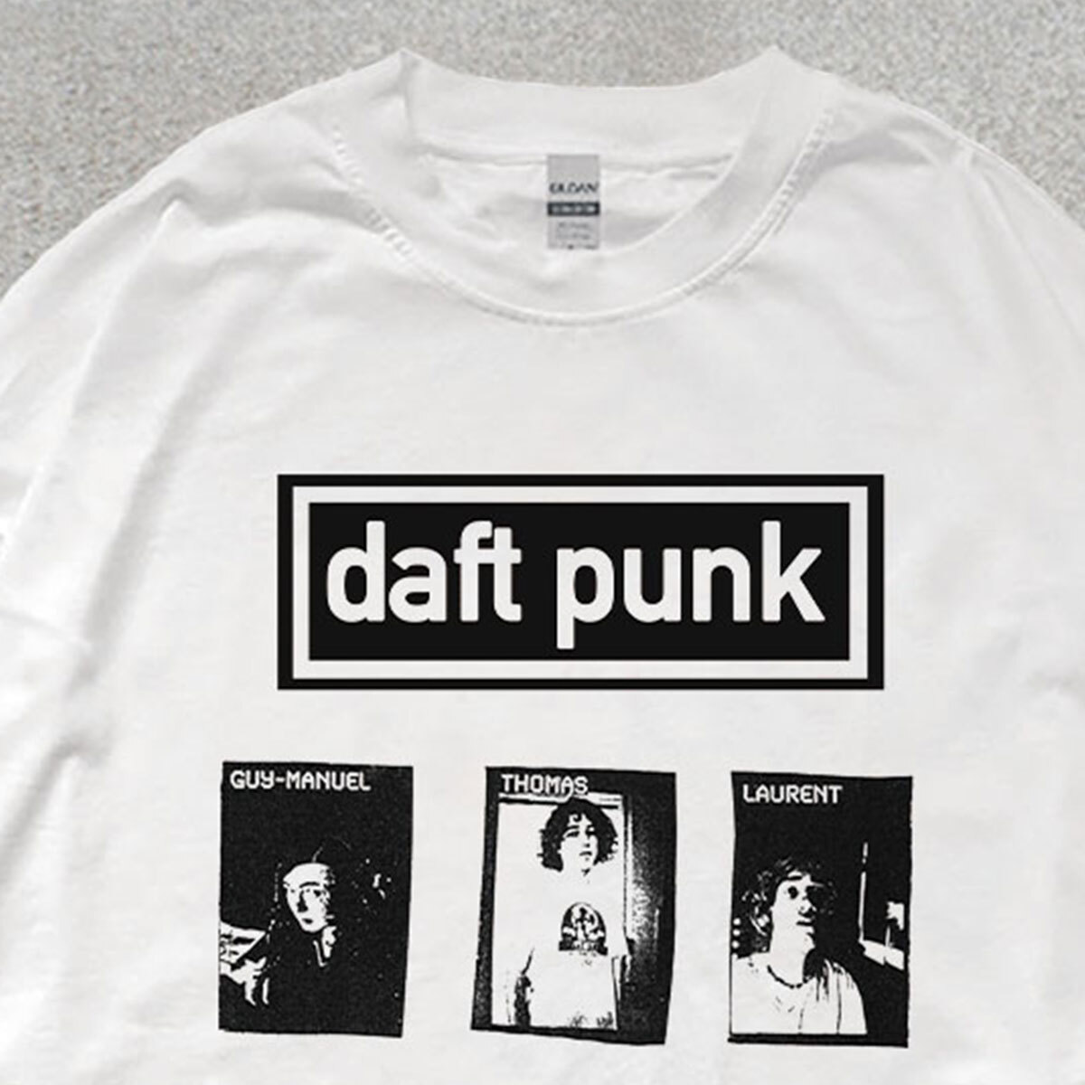 ダフトパンク duft punk イラストプリント バックプリント リブ付き 長袖 Tシャツ ロンT ミュージックT コットン100% シロ M L XL