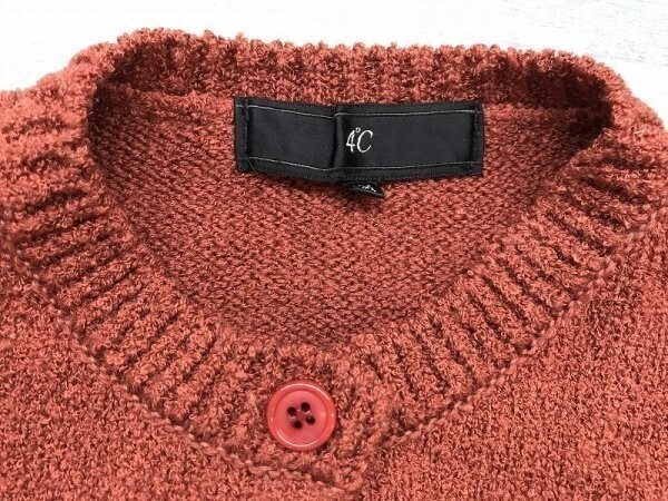 4℃ ヨンドシー レディース 日本製 クリル混ウール パイル ニットカーディガン M レンガ です。