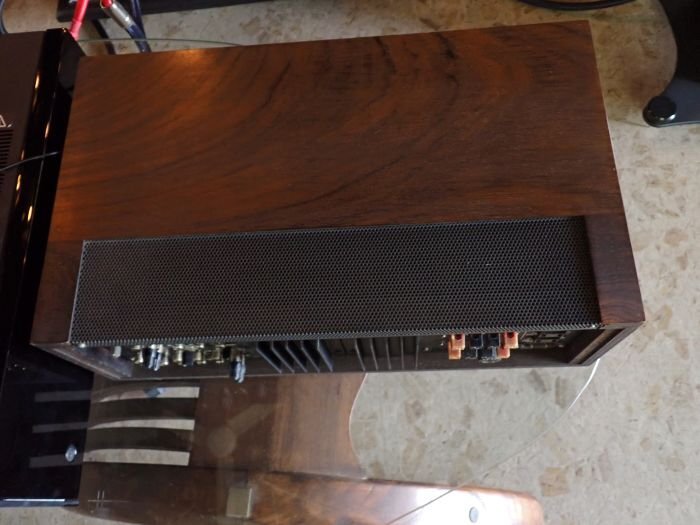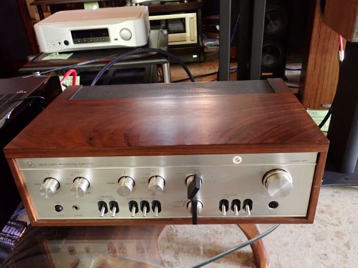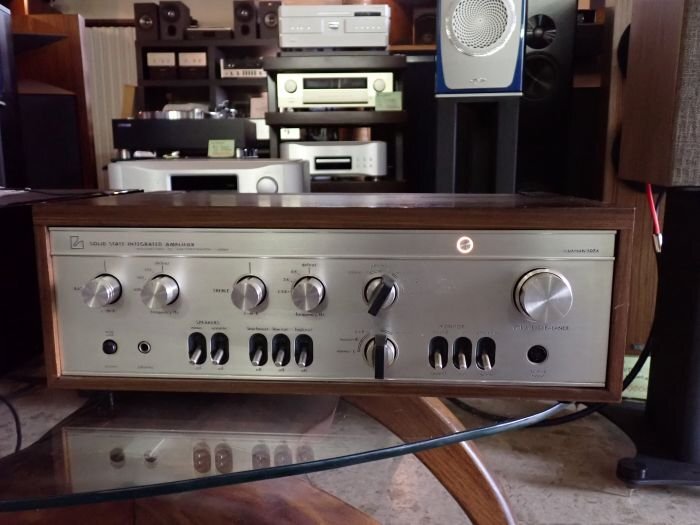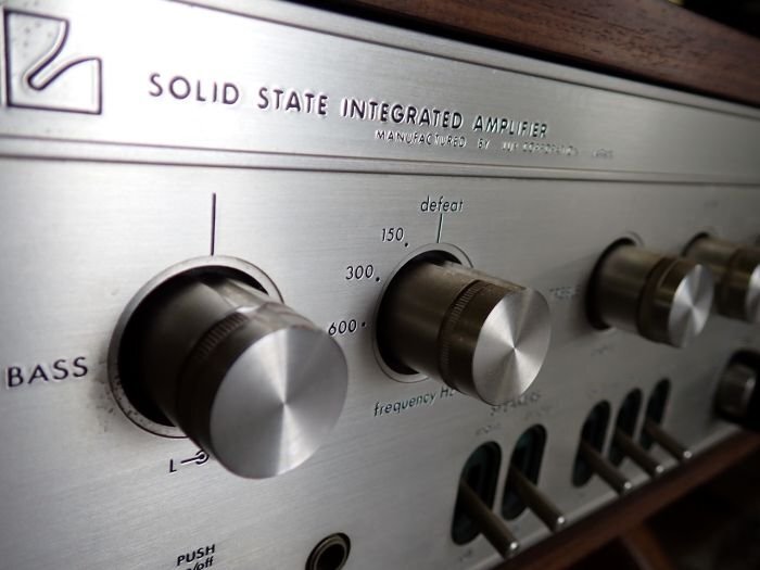 | 商品紹介 | ■ 特 色 ■ メインアンプ部には全段直結ピュア・コンプリメンタリ方式を採用しています。 パワー段のBクラス動作部分には、NPN型とPNP型のパワートランジスタを各々ダーリントン接続しており、上の半サイクルと下の半サイクルのスイッチング特性を完全に対称とするため、電流増幅率(hfe)の揃ったペアのパワートランジスタを採用しています。出力段とBクラス・ドライバ段には、ともに高域特性および耐破壊特性が優れたトランジスタを採用することで、出力端短絡時の信頼度を高めています。 プリアンプ部のイコライザ段には、電圧利用率の有利なNPN型-PNP型-NPN型のトランジスタで構成する3段直結回路を採用し、優れたリニアリティを得ると共に、直流帰還を十分にかけて直流安定度を高めてます。 また、標準RIAAカーブとの偏差は、使用パーツの許容誤差を小さくし、ばらつきを抑える事で±0.5dB以内に納めています。 ■ 仕 様 ■ 型式ステレオ・インテグレーテッド・アンプ 連続実効出力50W+50W(8Ω、両ch同時動作) 60W/60W(8Ω、片ch動作) 全高調波歪率0.03%以下(8Ω、50W) 混変調歪率0.04%以下(8Ω、50W、70Hz:7kHz=4:1) 出力帯域幅5Hz~50kHz -3dB(0.1%) 入力感度/インピーダンス580mV/50kΩ 残留雑音0.5mV以下 ダンピングファクター40(8Ω、20Hz~20kHz) 付属装置アッテネーター(-18dB) メインスピーカー・スイッチ リモートスピーカー・スイッチ ヘッドホンジャック 標準出力電圧Pre out:580mV Rec out:100mV 最大出力電圧Pre out:5V 出力インピーダンスPre out:約100Ω Rec out:約100Ω 周波数特性10Hz~50kHz -1dB(Aux1) 全高調波歪率0.04%以下(Aux1、1kHz、1V) 入力感度Phono1、2:2.4mV Tuner:100mV(入力レベルセット付) Aux1、2:100mV Mic:2.4mV 入力インピーダンスPhono1:50kΩ、65kΩ、90kΩ、切換 Phono2:65kΩ Tuner:50kΩ Aux1、2:50kΩ Mic:50kΩ SN比Phono1、2:65dB以上 Mic:60dB以上 Tuner、Aux1、2:80dB以上 最大許容入力Phono:300mV(1kHz、R・M・S) トーンコントロールLUX方式NF型湾曲点切換付 低域湾曲点:150Hz、300Hz、600Hz 高域湾曲点:1.5kHz、3kHz、6kHz フィルターローカット:30Hz、6dB/oct ハイカット:8kHz、6dB/oct ローブースト70Hz |