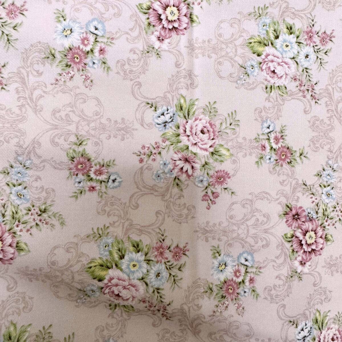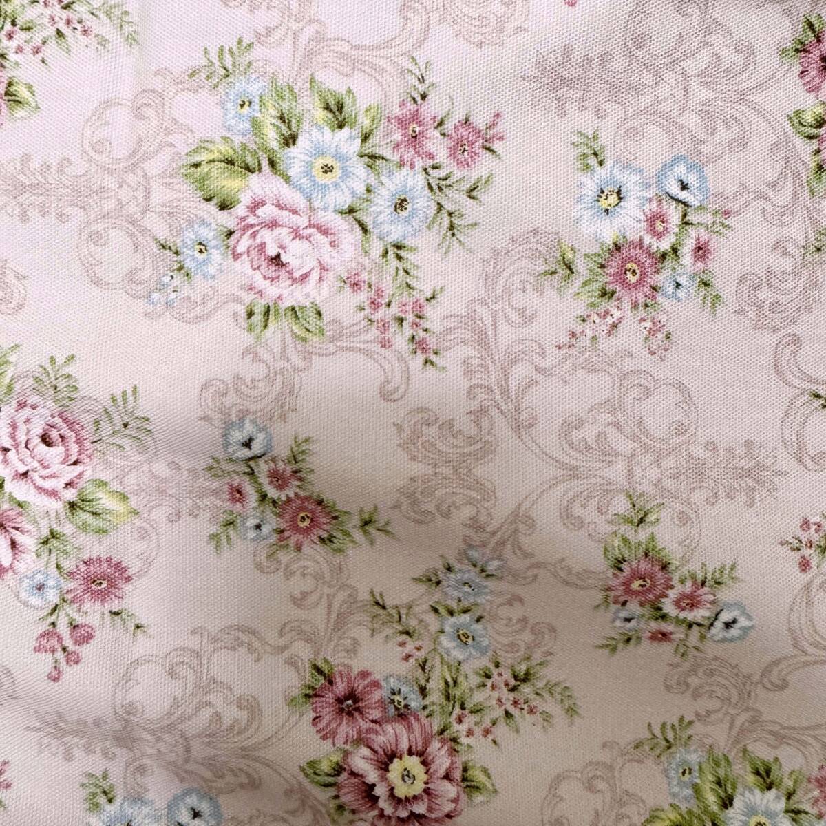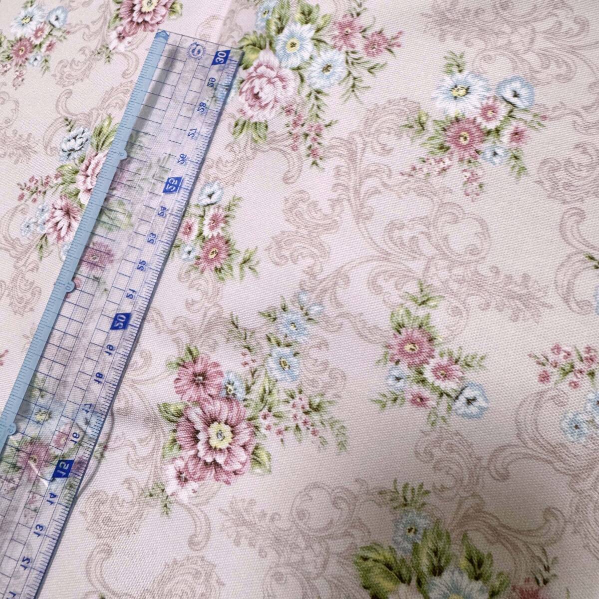 アラベスク柄アンティーク風ピンク綿オックス生地はぎれ布50cローズばらバラ薔薇