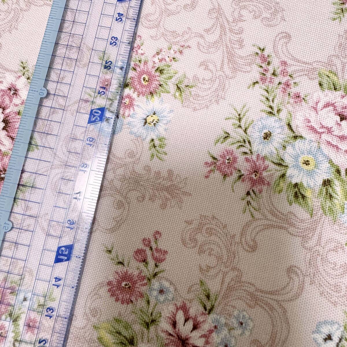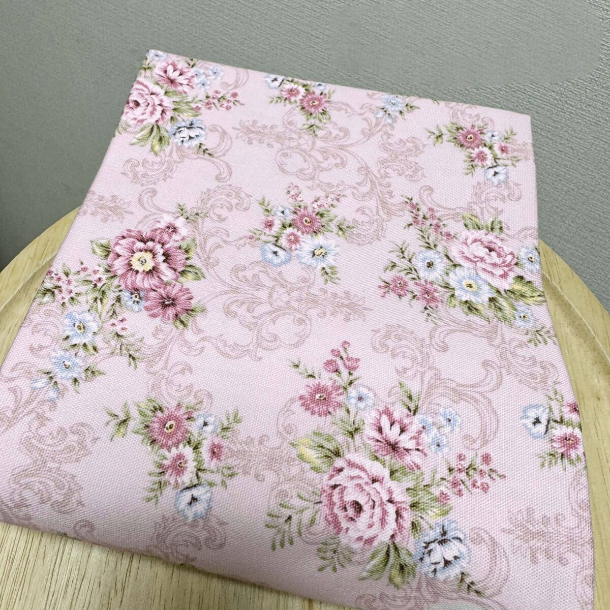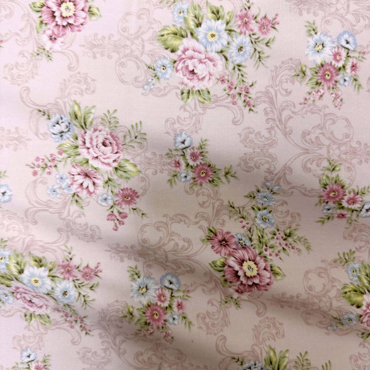 アラベスク柄アンティーク風ピンク綿オックス生地はぎれ布50cローズばらバラ薔薇