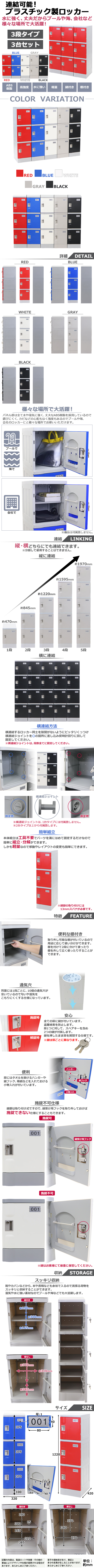 | 商品名 | 送料無料 プラスチックロッカー ロッカー エコノミーモデル 連結可能 3人用 3段 3台セット おしゃれ 選べる5カラー 水に強い 鍵付き スペアキー付き ABS樹脂製 樹脂ロッカー プラスチック製 収納 プール 海 事務所 会社 病院 更衣室 貴重品 オフィスロッカー オフィス家具 サイドチェスト plalocker33 |