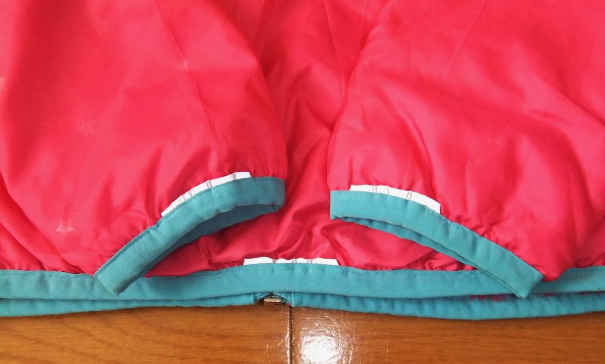 素材は、表地・裏地ともポリエステル100%です。片面はシャカシャカした生地、裏返すとボア生地です。