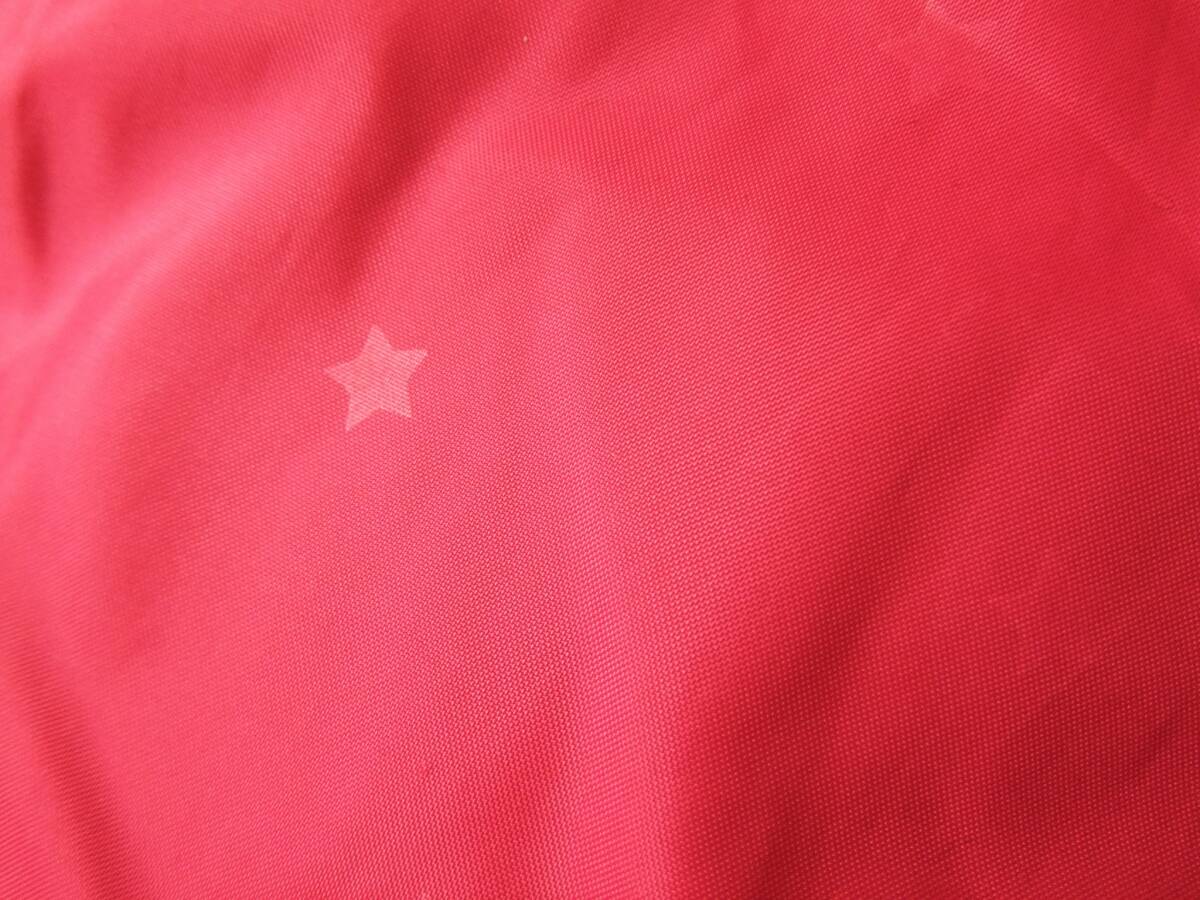 シャカシャカした生地の方は、小さい星がちりばめられています。お腹部分に左右1個ずつポケットあります。