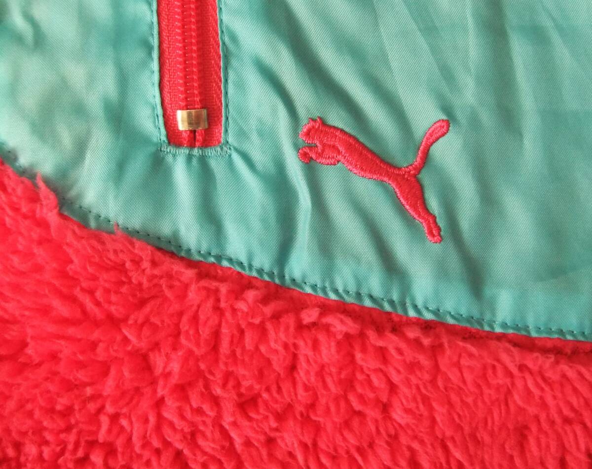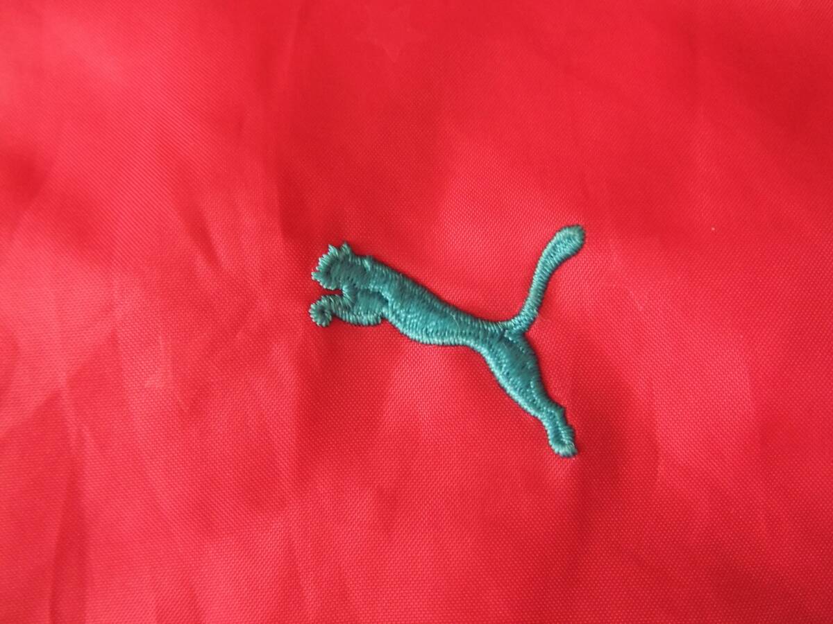 シャカシャカ生地・ボア生地、どちらの胸元にもプーマのブランドマークが刺繍されています。