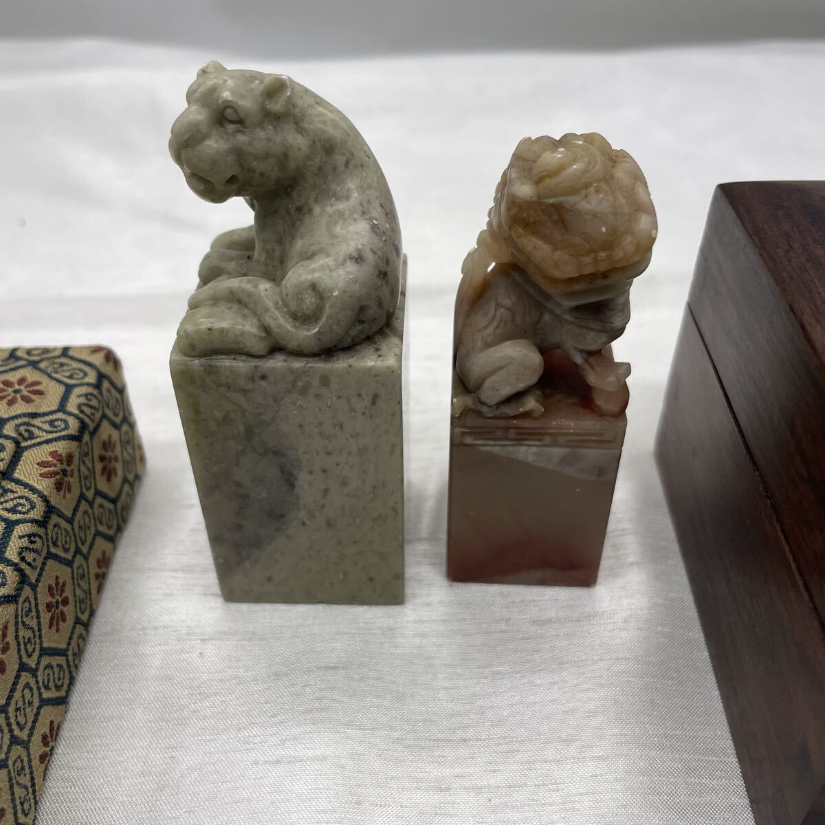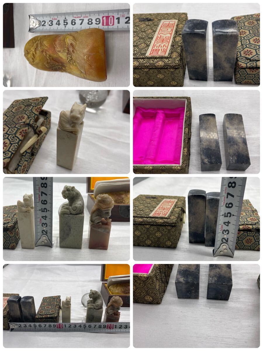 それぞれ異なる石材で構成され、獅子や動物の細かな彫刻が施された印材もあり、コレクションとしても魅力的な品です。