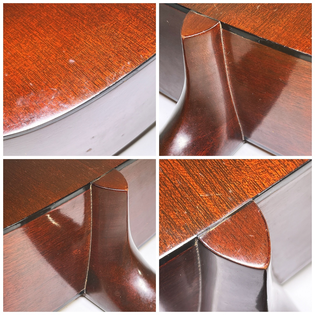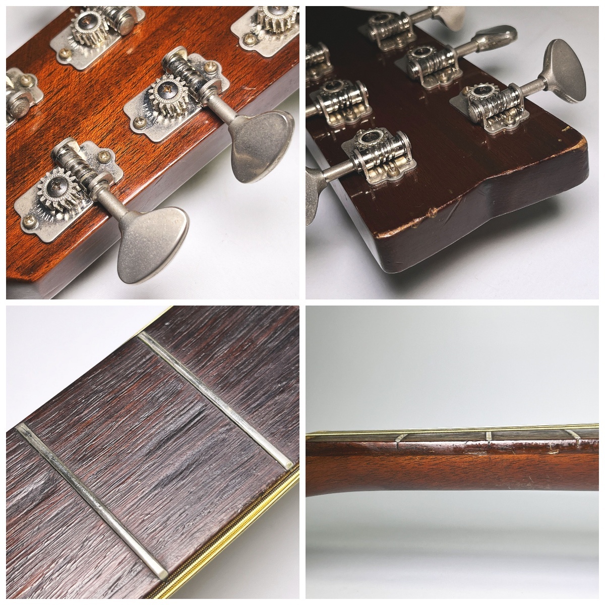 | ●ネックストレート(元起き) ●トラスロッド右方向に余裕なし ●ナット幅45mm ●スケール635mm ●フレット4〜5割程 ●弦高12F 6弦4.5mm 1弦3.5mm(ネックが元起きしており弦高が高くなっております) ●サドル高さ 6弦2.8mm 1弦2.8mm ●重量1850g |