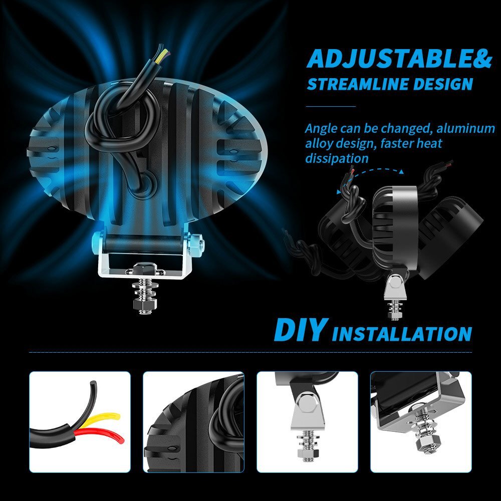 幅広いアプリケーション:ほぼすべてのトラック、UTV、ATV、4x4、トレーラー、ピックアップ、車、SUV、ボートなどと互換性のある、すべての12V車両およびデバイスに適合します。コンパクトなサイズと軽量のハウジングにより、バンパー、フード、ルーフなど、想像できるあらゆる場所を飾るのに最適です。フォグランプ、リバースライト、ドライビングライト、オフロードライト、ワークライトなどとしての使用に最適です。