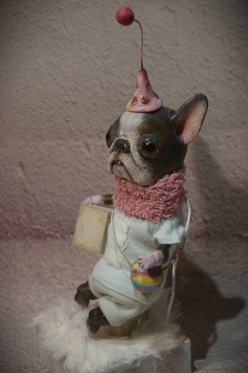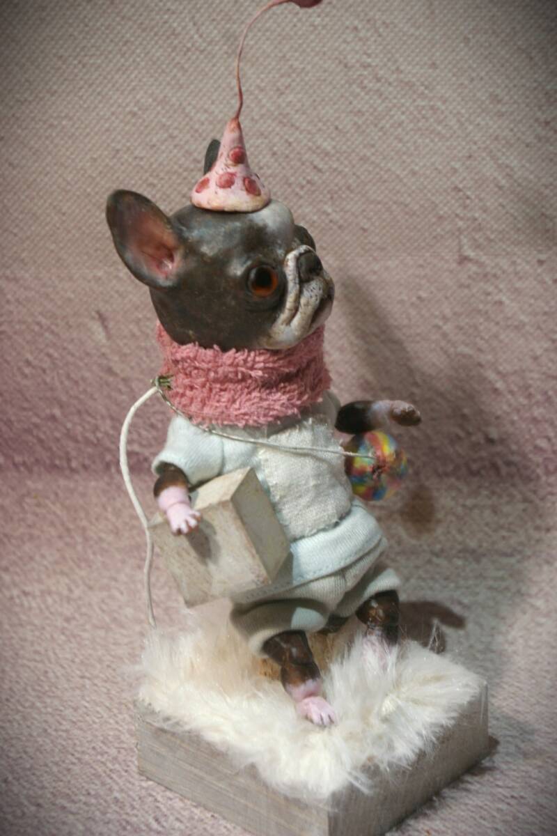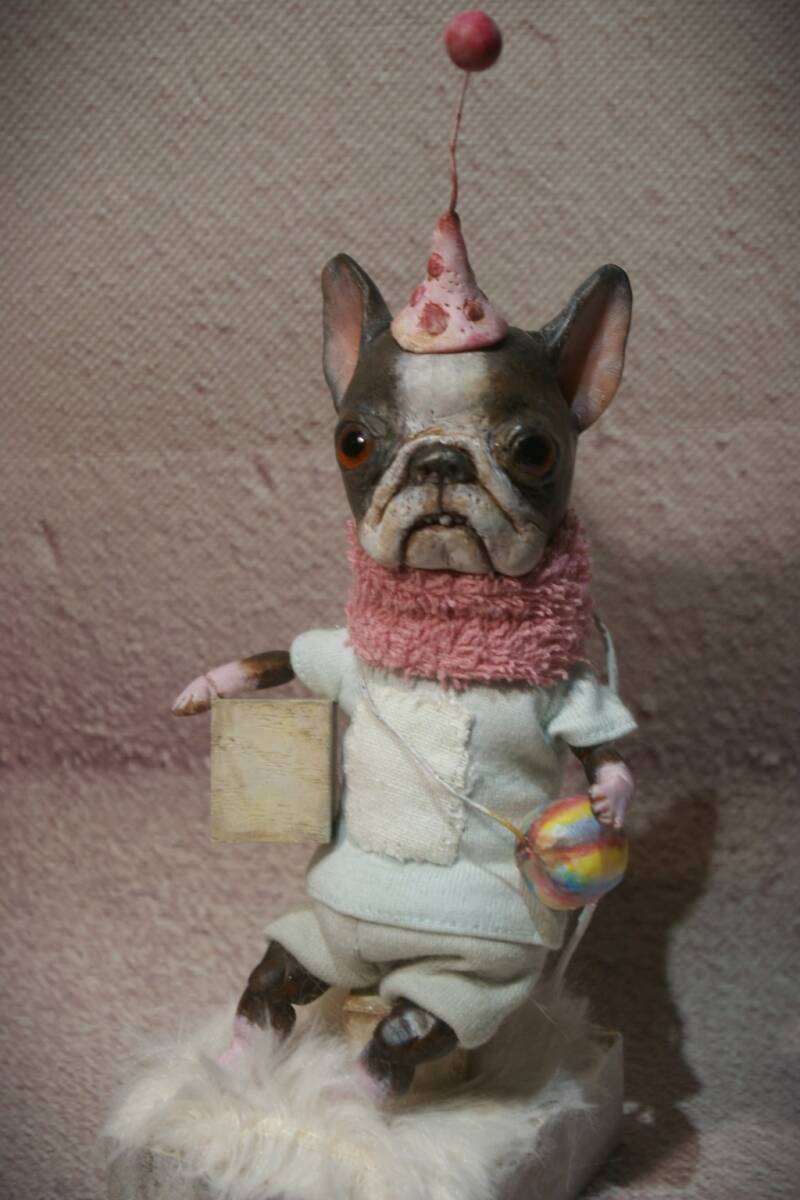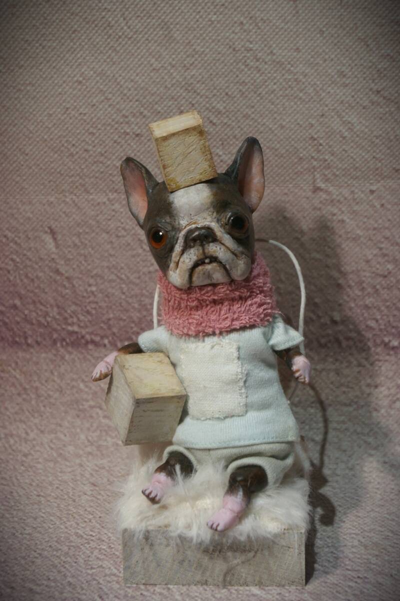 犬さんとヘンテコな台座と。。小物。。帽子 積み木。。。ヘンテコな玉。。少しピチピチの洋服。。のセットです。身長は耳を入れないで約14㎝です。。作りは 頭 手足が樹脂粘土 体は布で中にペレットと綿を入れています。 首はジョイント。。手足は糸留めです。ペイントはアクリル絵の具 その他。。。目はグラスアイ 洋服は上着のみ着脱できます。。素敵なご縁がありますように。。どうぞ 宜しくお願いします。