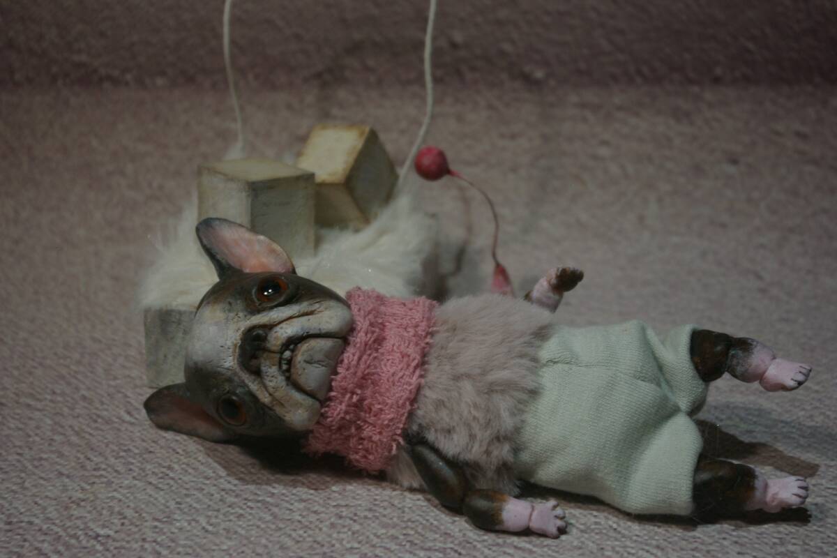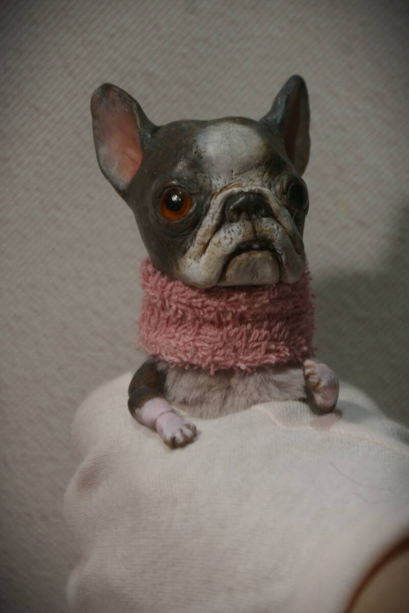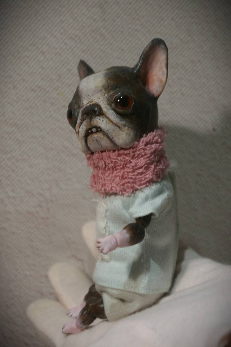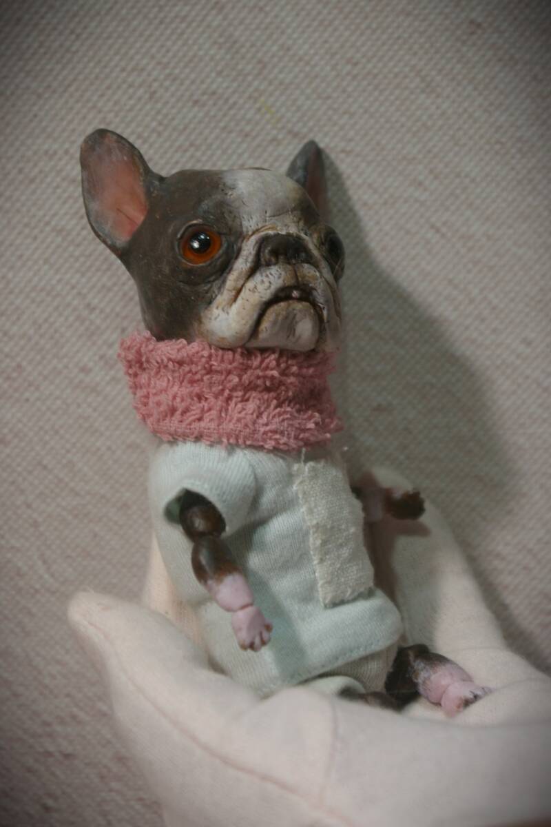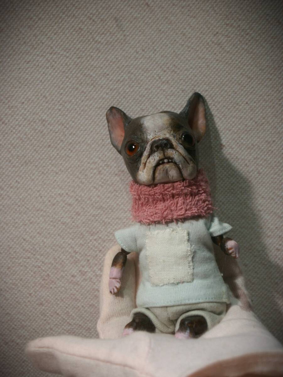 犬さんとヘンテコな台座と。。小物。。帽子 積み木。。。ヘンテコな玉。。少しピチピチの洋服。。のセットです。身長は耳を入れないで約14㎝です。。作りは 頭 手足が樹脂粘土 体は布で中にペレットと綿を入れています。 首はジョイント。。手足は糸留めです。ペイントはアクリル絵の具 その他。。。目はグラスアイ 洋服は上着のみ着脱できます。。素敵なご縁がありますように。。どうぞ 宜しくお願いします。