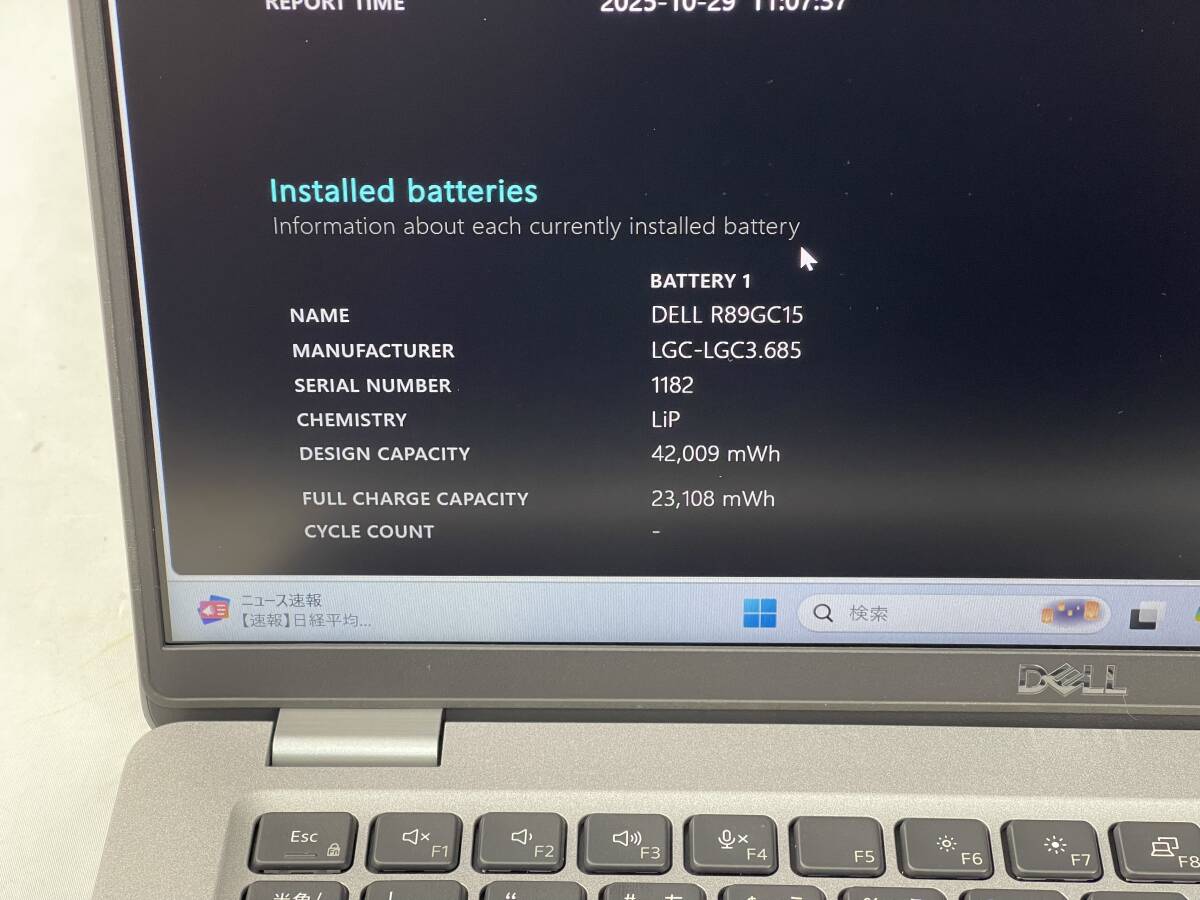 | 【電池】現時点では充電および動作に問題はありません。消耗状態については、画像のバッテリーレポートをご参照ください。 | |