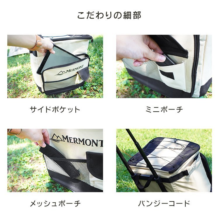 キャスター付きなのに折り畳める! ソフトクーラーボックスです。 高い保冷能力&たっぷり入る40Lサイズ! 断熱材を使用し冷気を逃がさず中の食材を守ります! 友人、ファミリーでのキャンプやBBQに最適! 収納ハンドルとキャスター付きで食材や飲み物が多くなってもラクラク移動できます。 薄くコンパクトに収納でき持ち運びラクラク♪ 【商品仕様】 カラー:グレー 容量:40L 耐荷重:約25kg 本体サイズ:約33cm×30cm×44cm ※最大寸法:約33cm×30cm×94cm 折りたたみ時:約39cm×10cm×46cm 重量:1.9kg 素材:600Dポリエステル、PEVA、チンジュメン他 【注意事項】 ・商品はモニターによって色合いが異なって見える場合があります。 ・仕様/デザインは改良のため予告なく変更することがあります。 |
