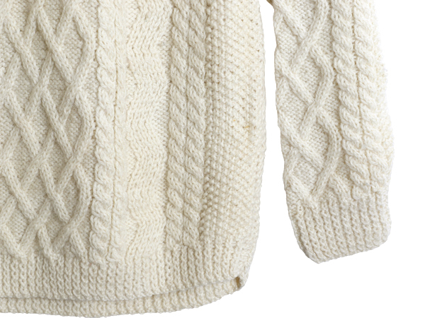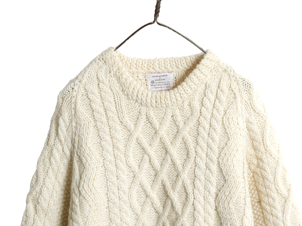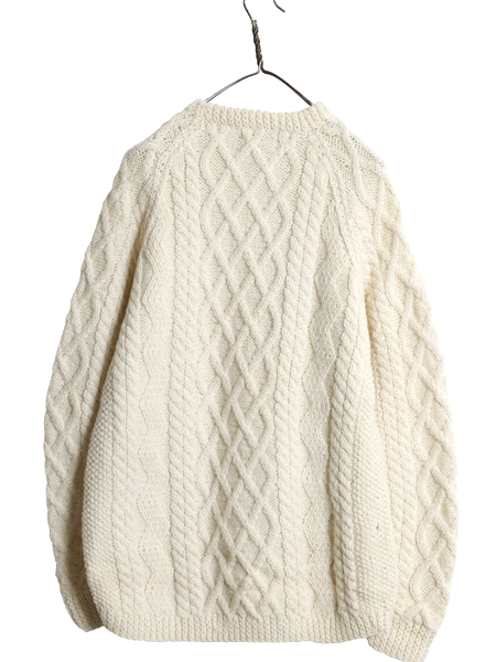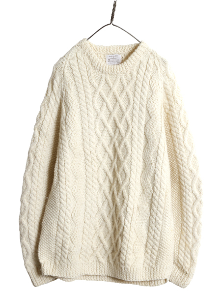 | 商品名 | 90s スコットランド製 フィッシャーマン ウール ニット セーター メンズ レディース L オールド ハンドメイド アラン ケーブル ナチュラル |