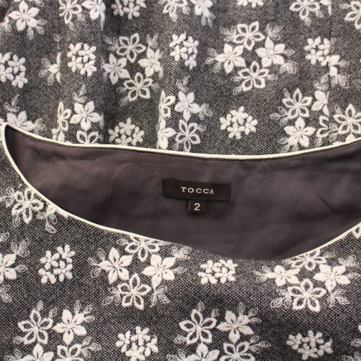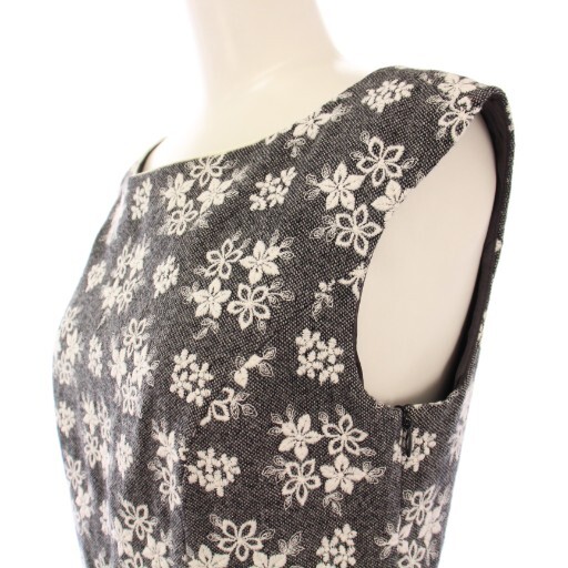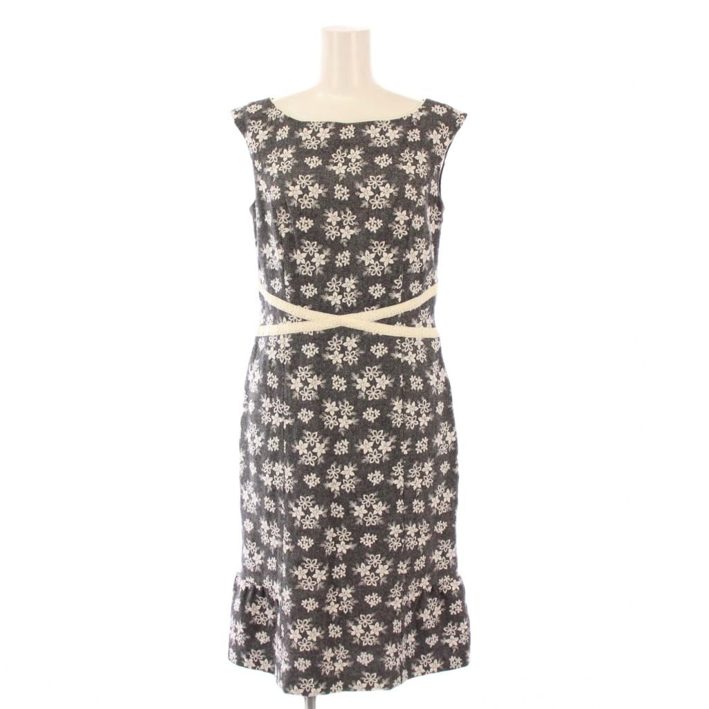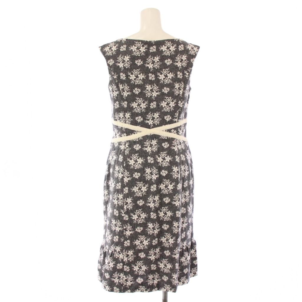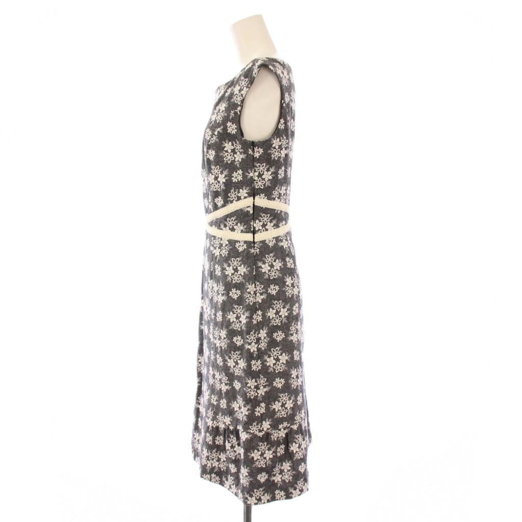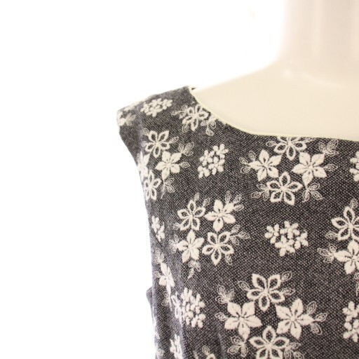 トッカ TOCCA フレアワンピース ひざ丈 クルーネック ノースリーブ 花柄 刺繍 バイカラー ウール 2 グレー 白 ホワイト /BB ■BM