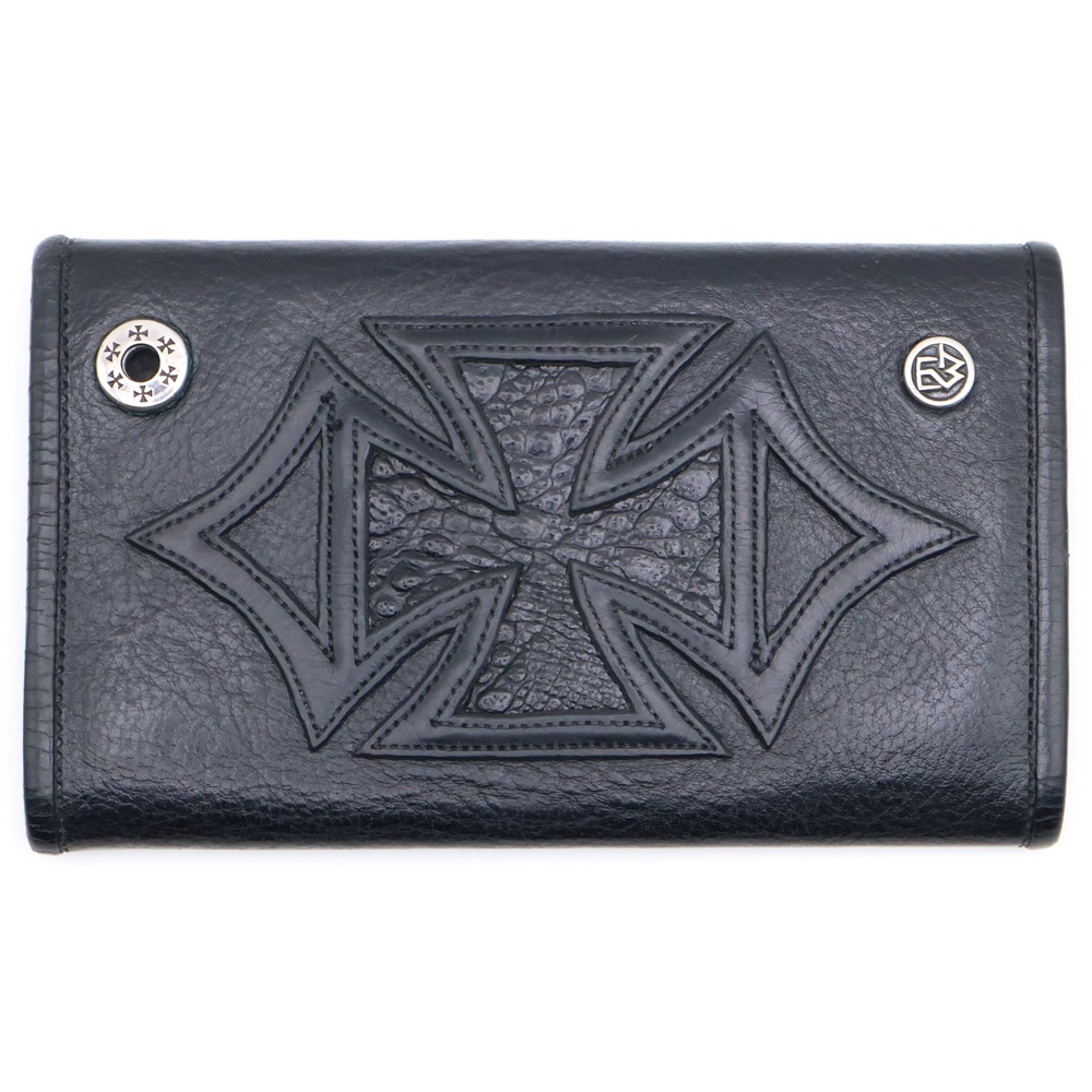 品名コンチョ付き アイアンクロスモチーフ レザー トラッカーウォレット 財布 ブラック