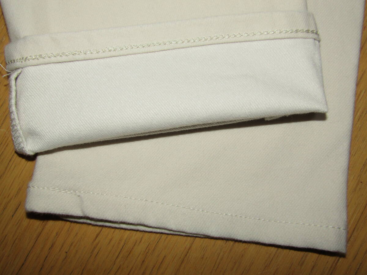 裾は当初のチェーンステッチのままで、そのままに、ロールアップで、任意の長さに裾上げなど様々に対応可能と思われます。