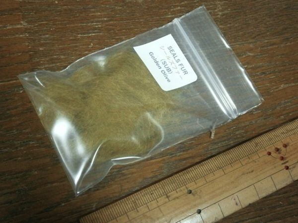 ★フライタイイング・マテリアル/シールズ・ファー・アザラシ (SUB)染色ゴールデン・オリーブ