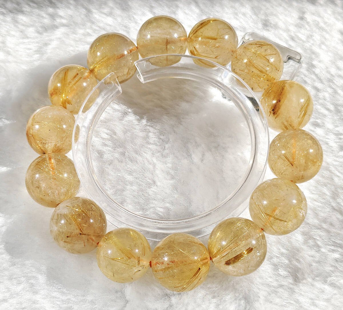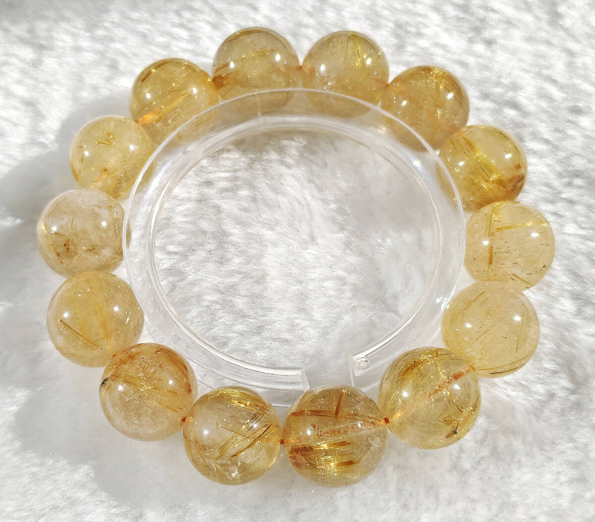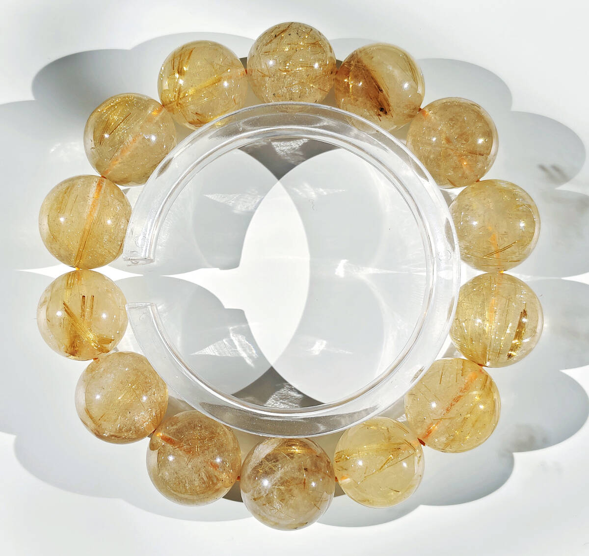 ○商品状態:新品・天然本物保証・色加工無 ※実物撮影 ○使用宝石:ゴールドタイチンルチル ○石重量: 約80g ○石サイズ:約16mm ○内周: 約18cm ○簡単説明:タイチンルチルのスペシャルバージョン。 太く帯状に金色のルチルが入っています。 ルチルの色合いは様々ですが、特に金色のルチルが入ったものは大変人気があります。 これは「金色の線入り」を「金銭入り」と置き換え、金運・財産運・事業運などを高めるとの考えからです。 ★★★ご注意:出品物はすべて携帯電話で自然光下で実物撮影したもので、実物色に最大限近づけていますが、ご使用のディスプレイ等の違いにより少し色差がある場合がありますのでご了承ください ★★★天然石のために、傷、凹み、ヒビ(内部の割れ)、サイズの不揃いがある場合があります。 |