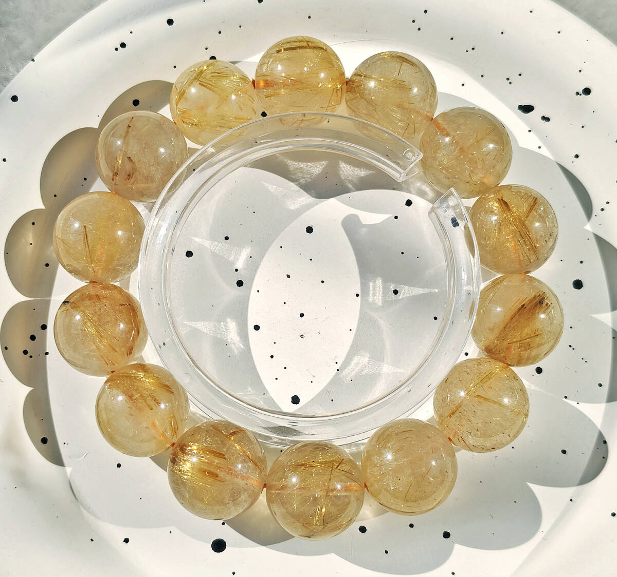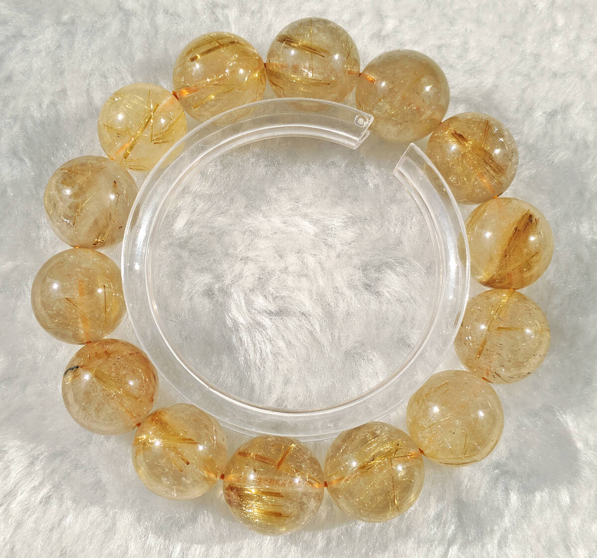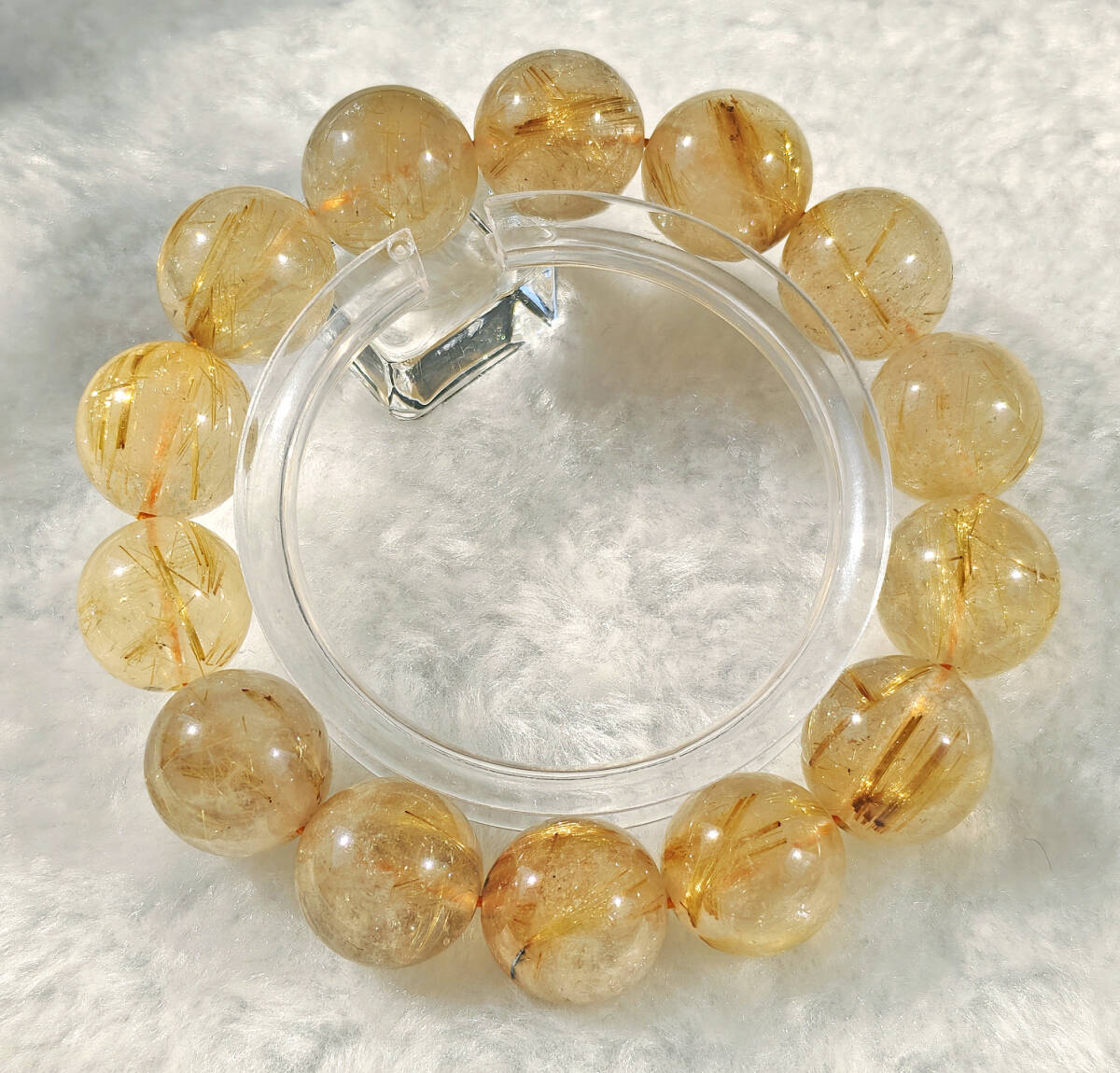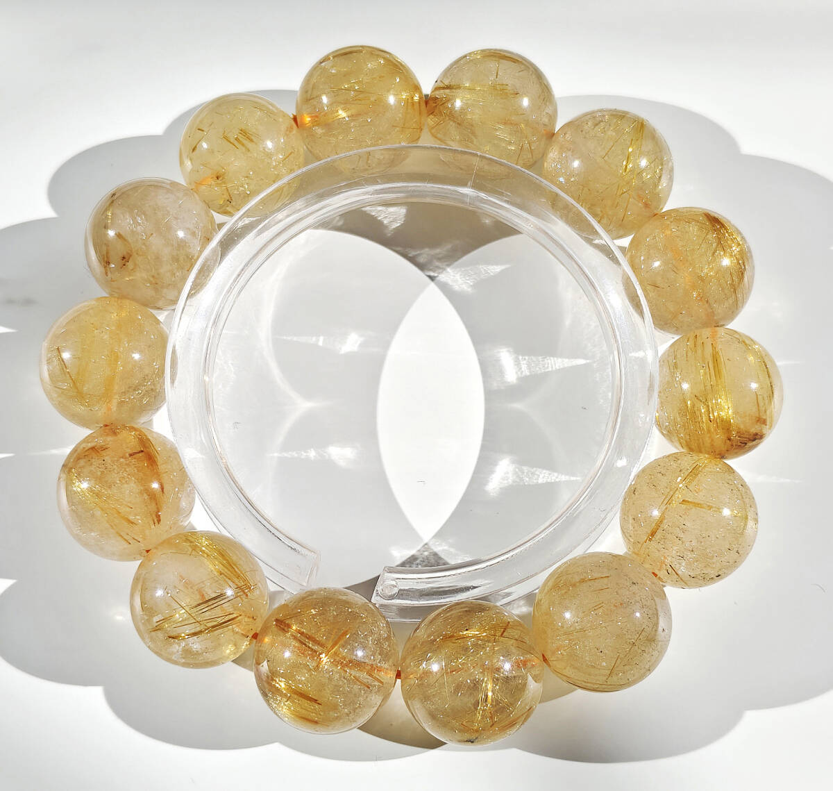 ○商品状態:新品・天然本物保証・色加工無 ※実物撮影 ○使用宝石:ゴールドタイチンルチル ○石重量: 約80g ○石サイズ:約16mm ○内周: 約18cm ○簡単説明:タイチンルチルのスペシャルバージョン。 太く帯状に金色のルチルが入っています。 ルチルの色合いは様々ですが、特に金色のルチルが入ったものは大変人気があります。 これは「金色の線入り」を「金銭入り」と置き換え、金運・財産運・事業運などを高めるとの考えからです。 ★★★ご注意:出品物はすべて携帯電話で自然光下で実物撮影したもので、実物色に最大限近づけていますが、ご使用のディスプレイ等の違いにより少し色差がある場合がありますのでご了承ください ★★★天然石のために、傷、凹み、ヒビ(内部の割れ)、サイズの不揃いがある場合があります。 |
