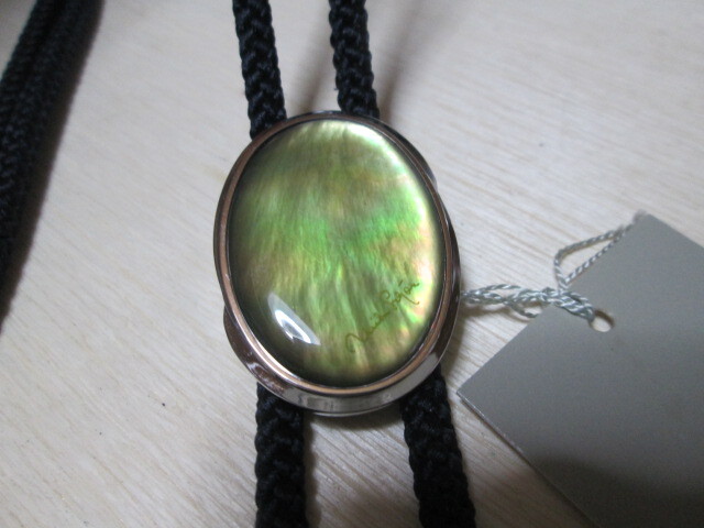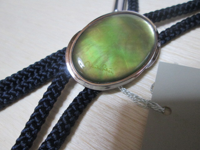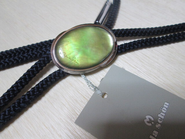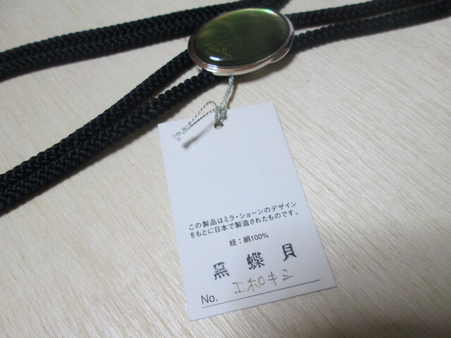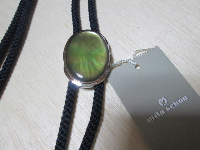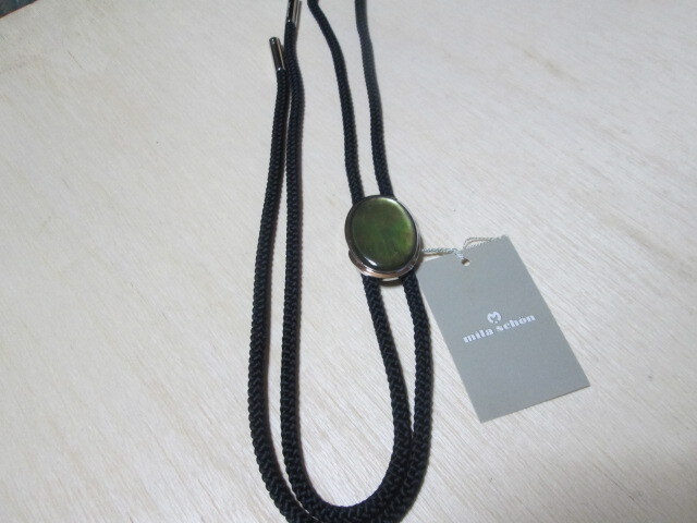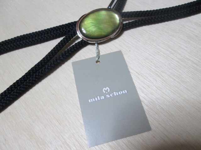★mila schon ミラショーン ロープタイ 絹100% 黒蝶貝 虹色 未使用★