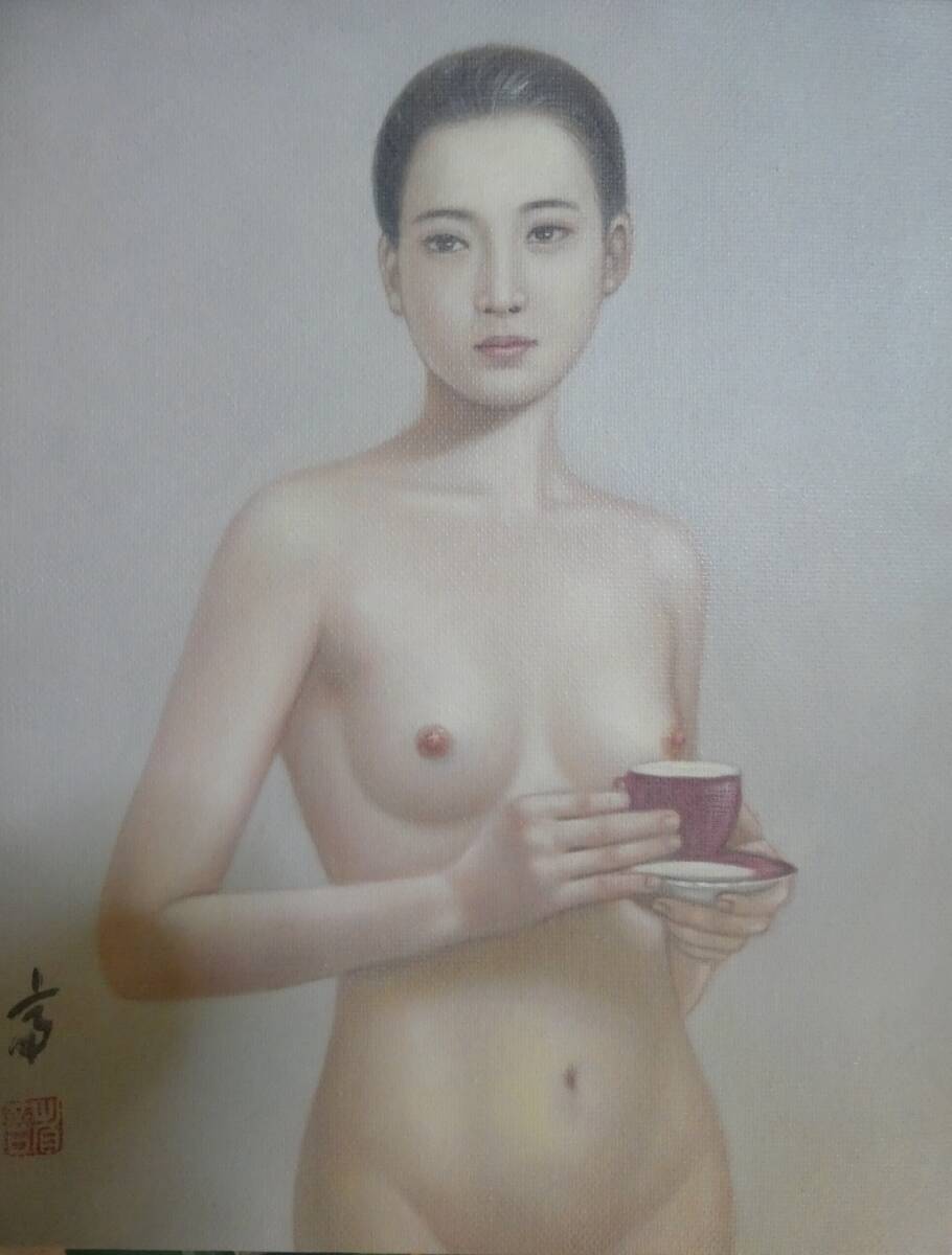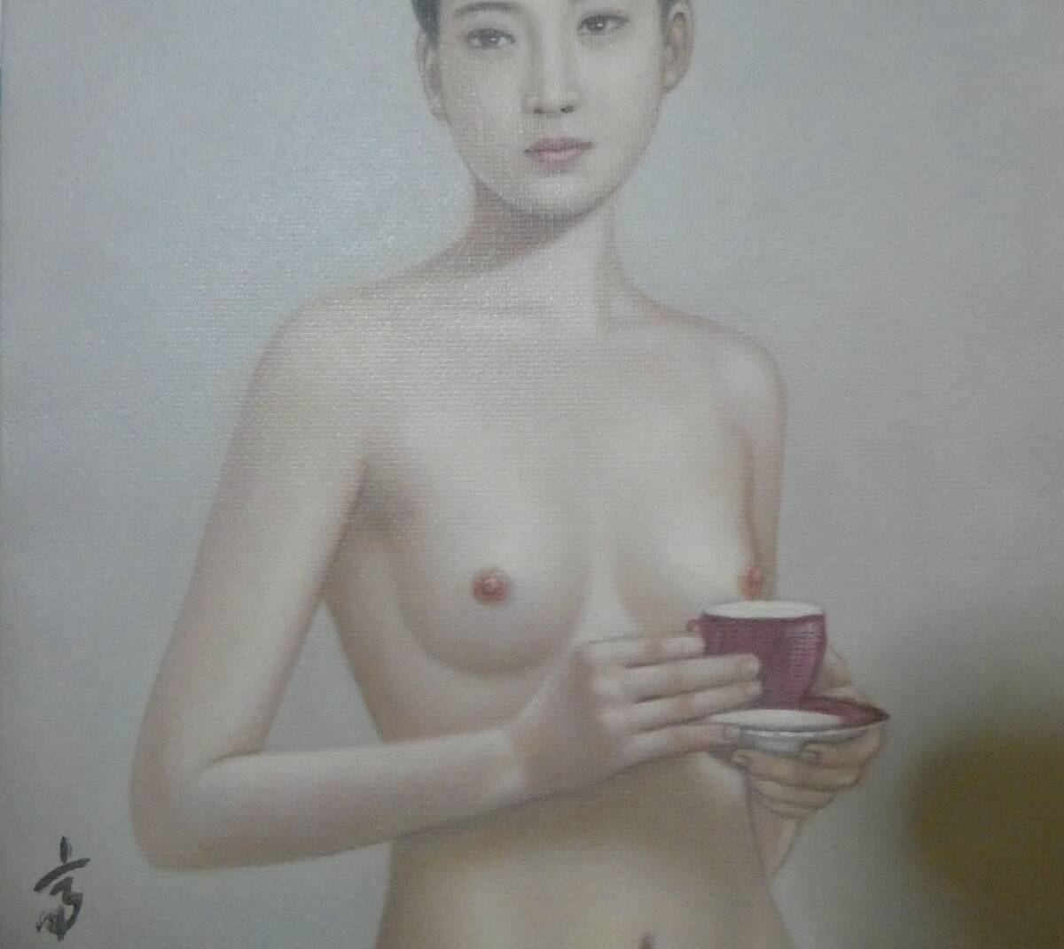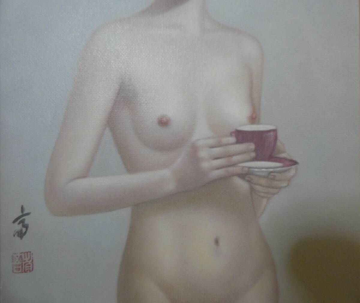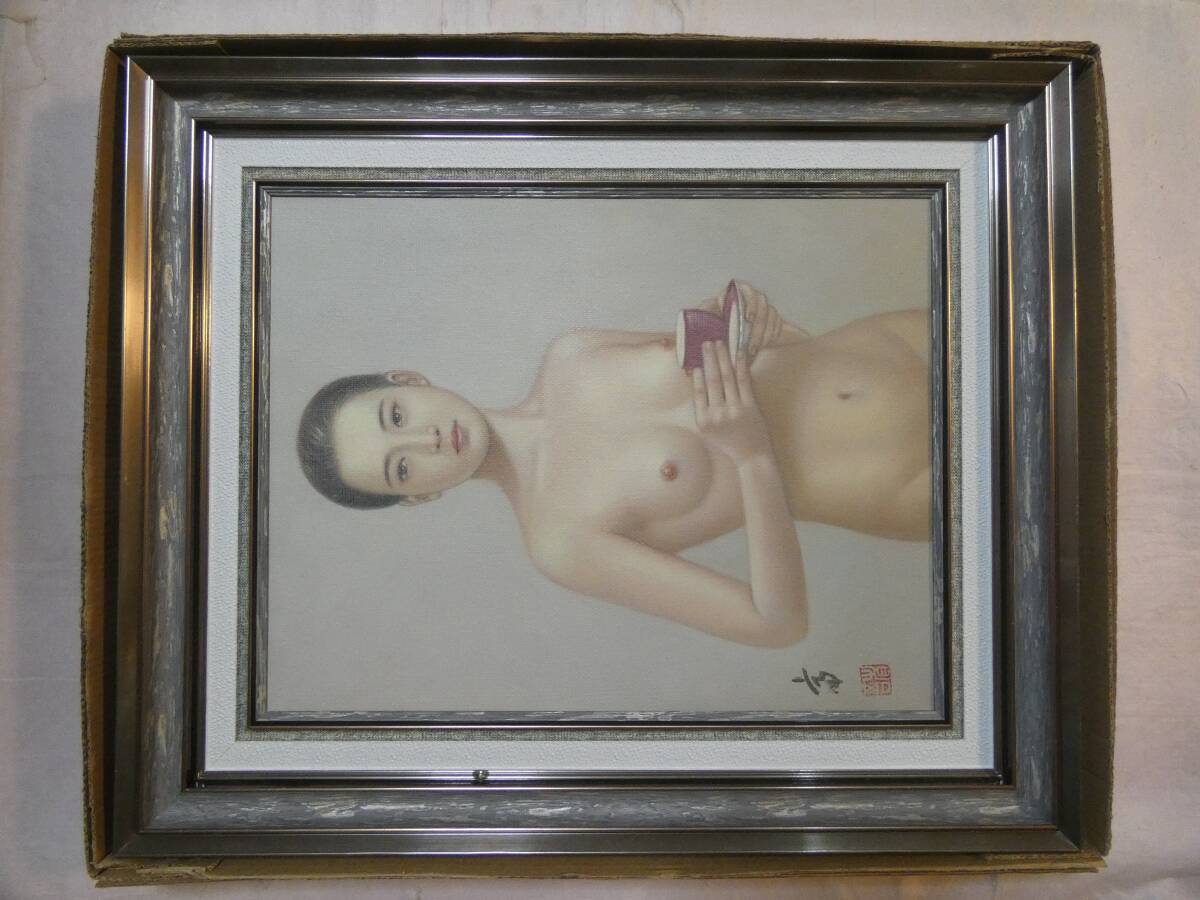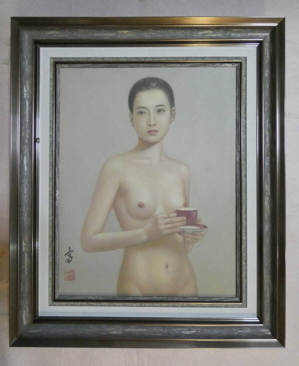 【模写】 油絵  高塚省吾 人物画 「珈琲」 サイン 額付き F6号