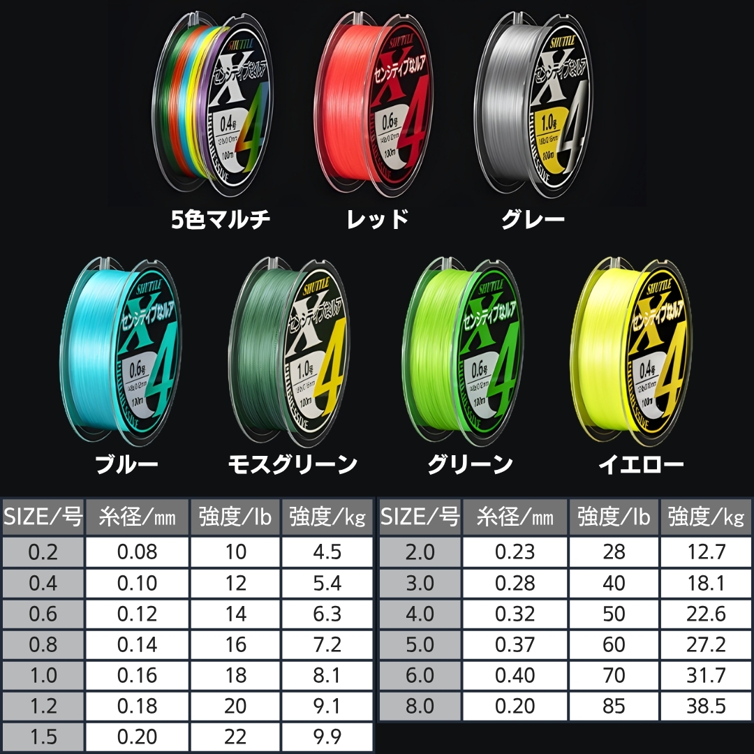 | サイズ(号) | 糸径(mm) | 強度(lb) | 強度(kg) |