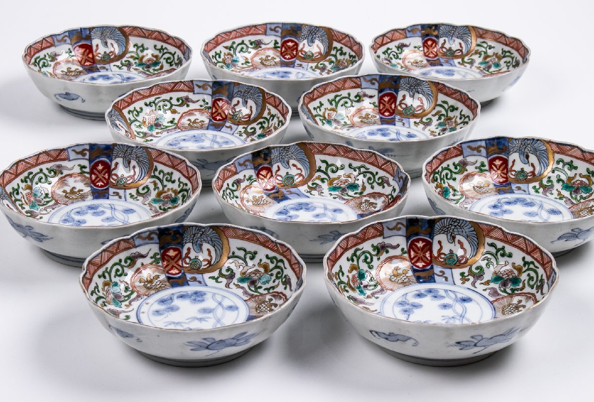 【うつわ】 古伊万里 染錦鶴亀文なます皿 6客 明治時代 E1795A バラ売り可能です 和食器 古美術 骨董 古玩 日本料理 懐石 料亭 茶道具