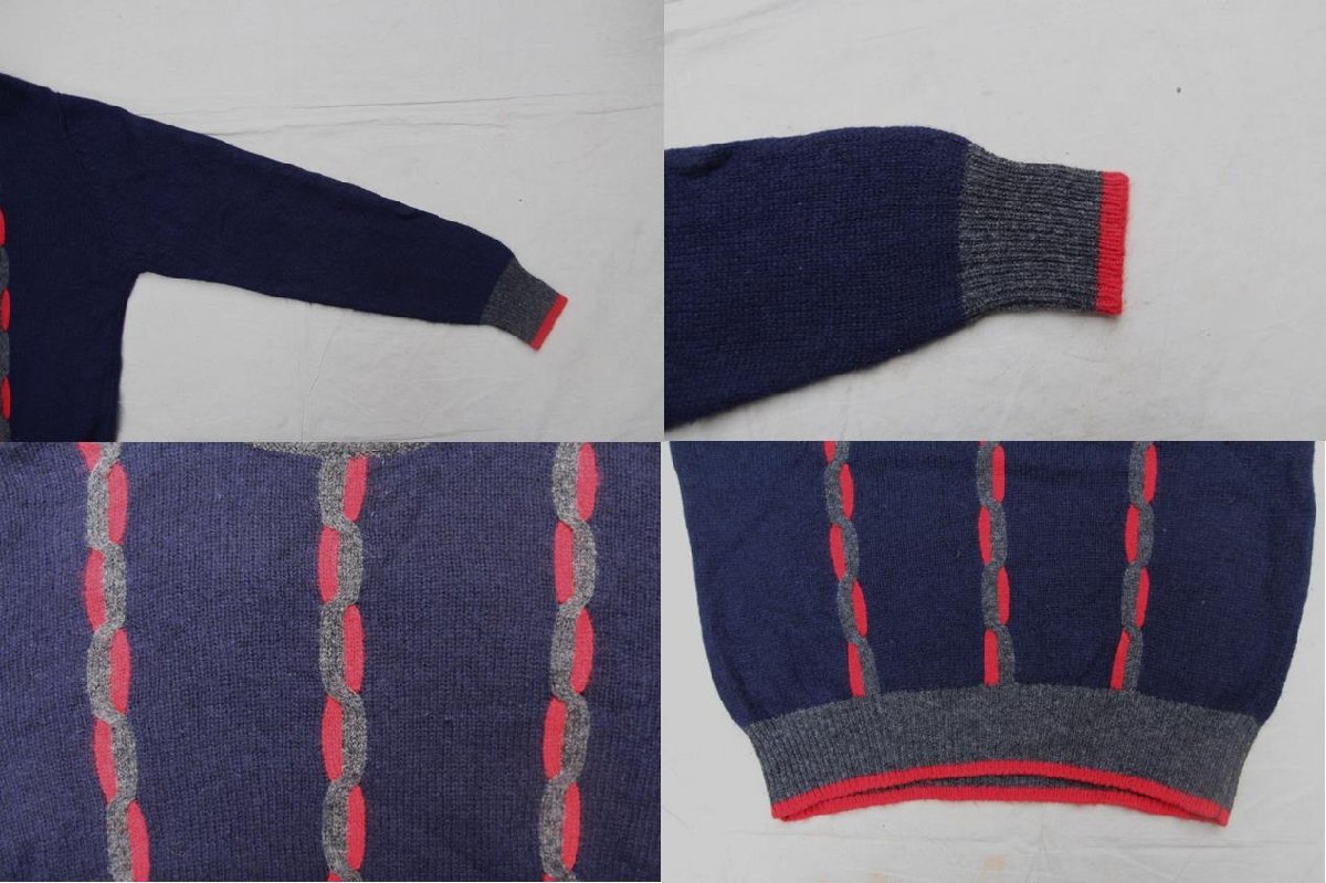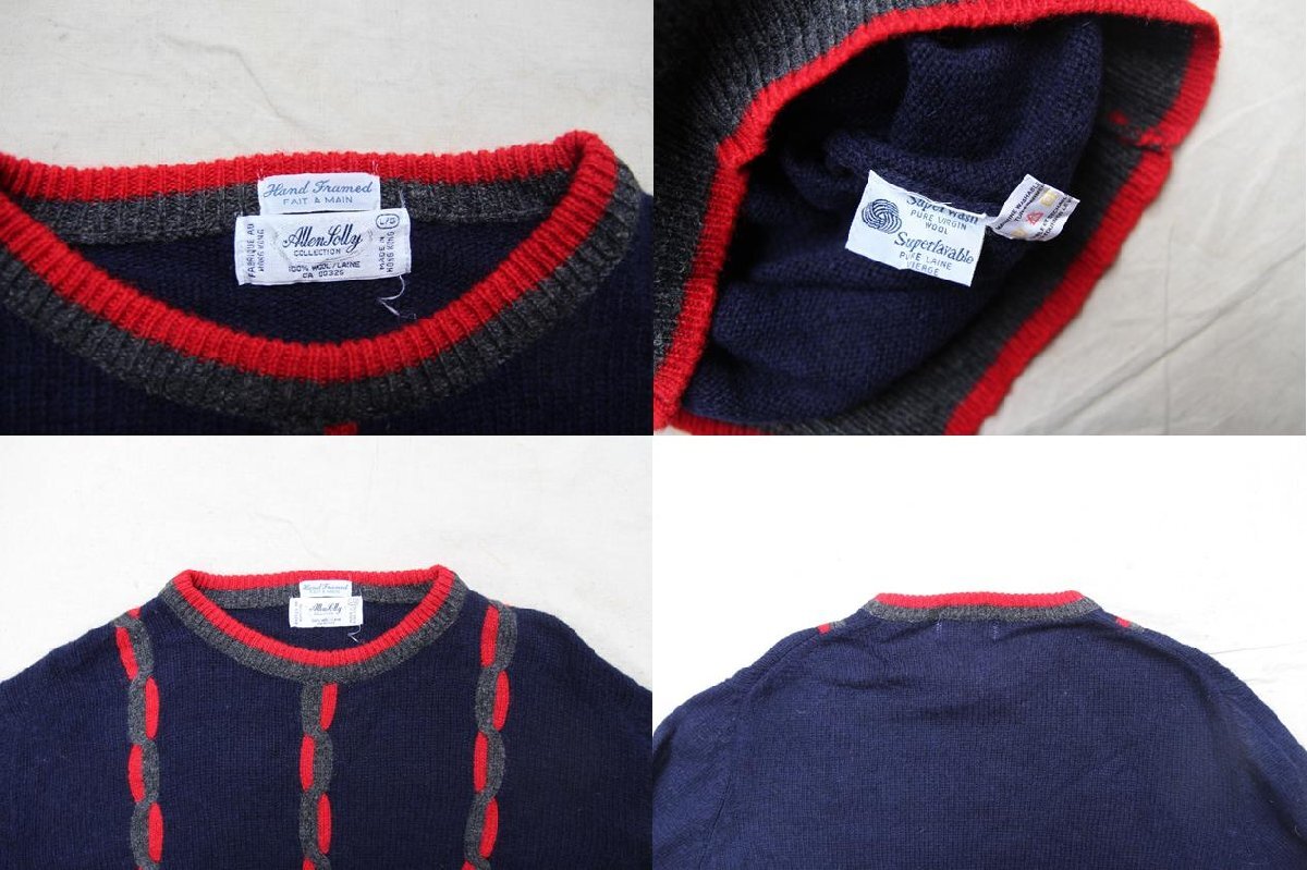 80s 90s VINTAGE ヴィンテージ USED 古着 Allen Lolly Wool Sweater Design Knit ウールデザインセーター 編み込み Navy Red L Hongkong