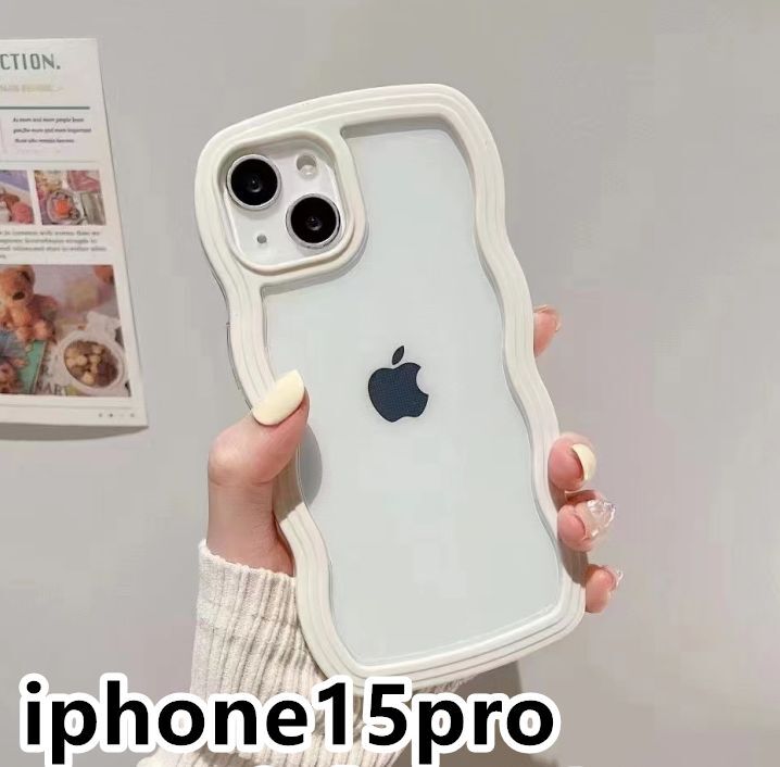 iphone15proケース カーバー TPU 可愛い 波型 お洒落 軽量 ケース 耐衝撃高品質ホワイト
