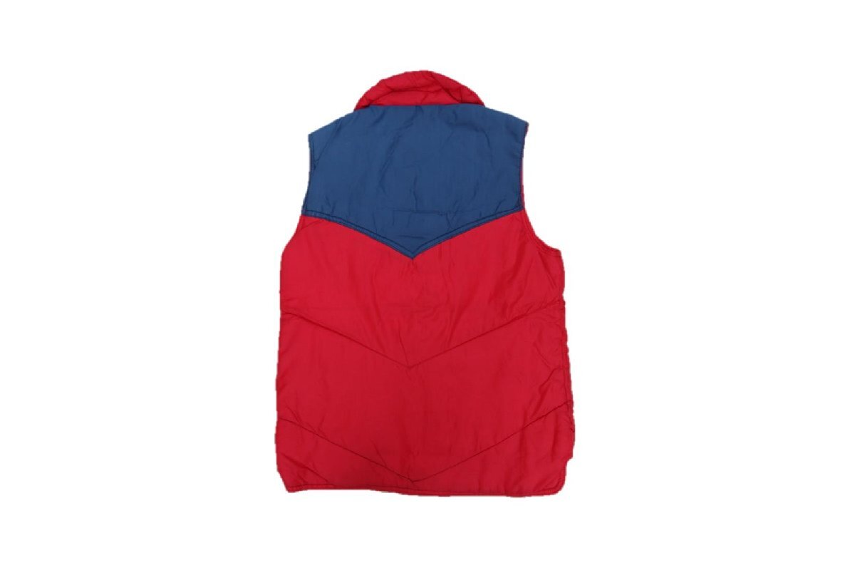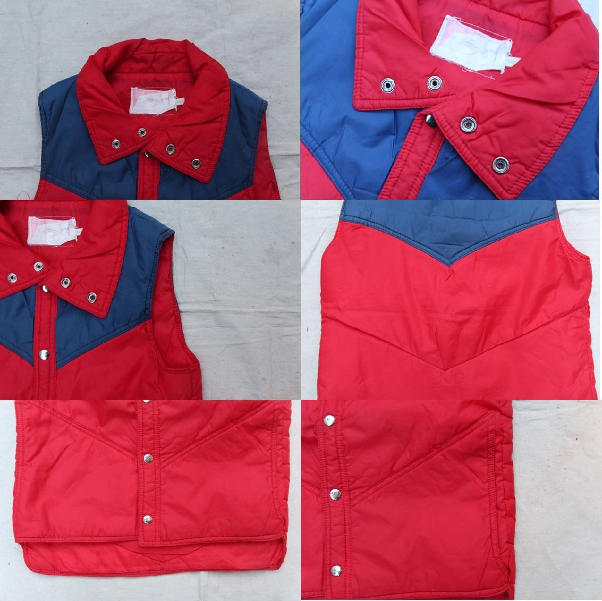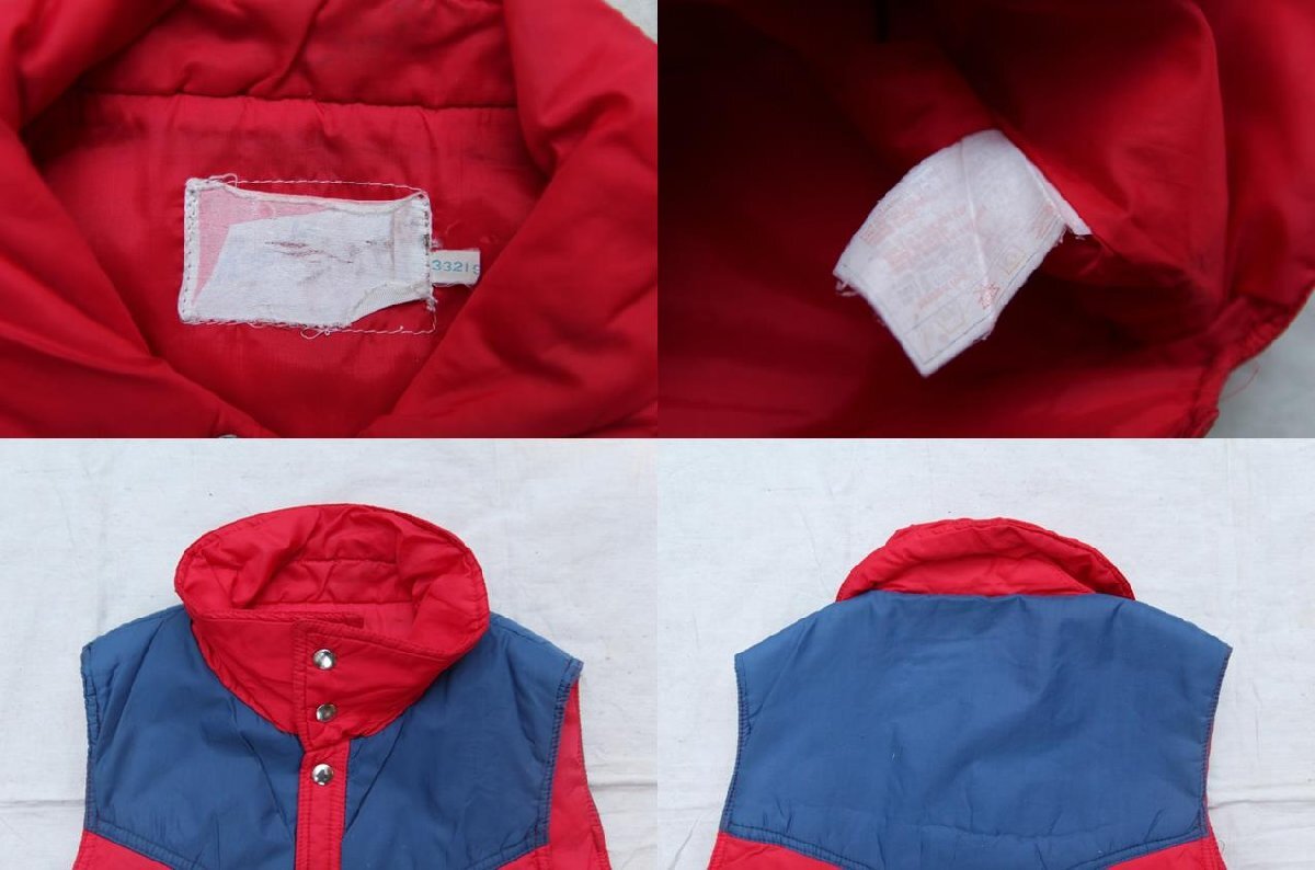 1980年代頃のブランド不明ナイロンベストになります。ブランドタグや内タグは存在しておりますが、経年劣化による擦れ等により薄れてしまっておりますのでブランド不明とさせて頂いております。80年代や90年代初期を彷彿とさせるアメカジ色の強いベストです。そこまで厚みは無く、薄手のベストになりますのでインナーとしての着用等のレイヤード等に向いているアイテムだと思います。カラーもレッド基調にネイビーの配色、ヨークのV字切り替えのデザインがアメリカらしい味のあるデザインですのでコーディネートのアクセントが期待出来るかと思います。フロントは全てスナップボタンですので着脱も容易です。是非チノやジーンズと合わせた王道アメカジスタイルをお楽しみ頂ければと思います。お好きな方やお探しだった方は是非この機会にご検討下さい。