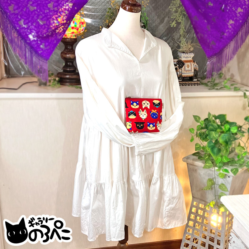 かわいいネコの顔がギュギュッと並んだ、かわいいポーチができました。