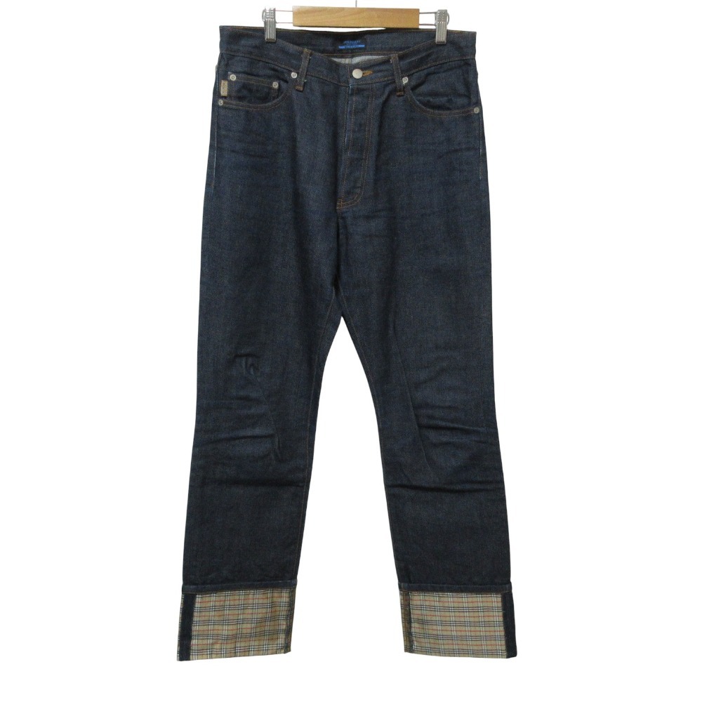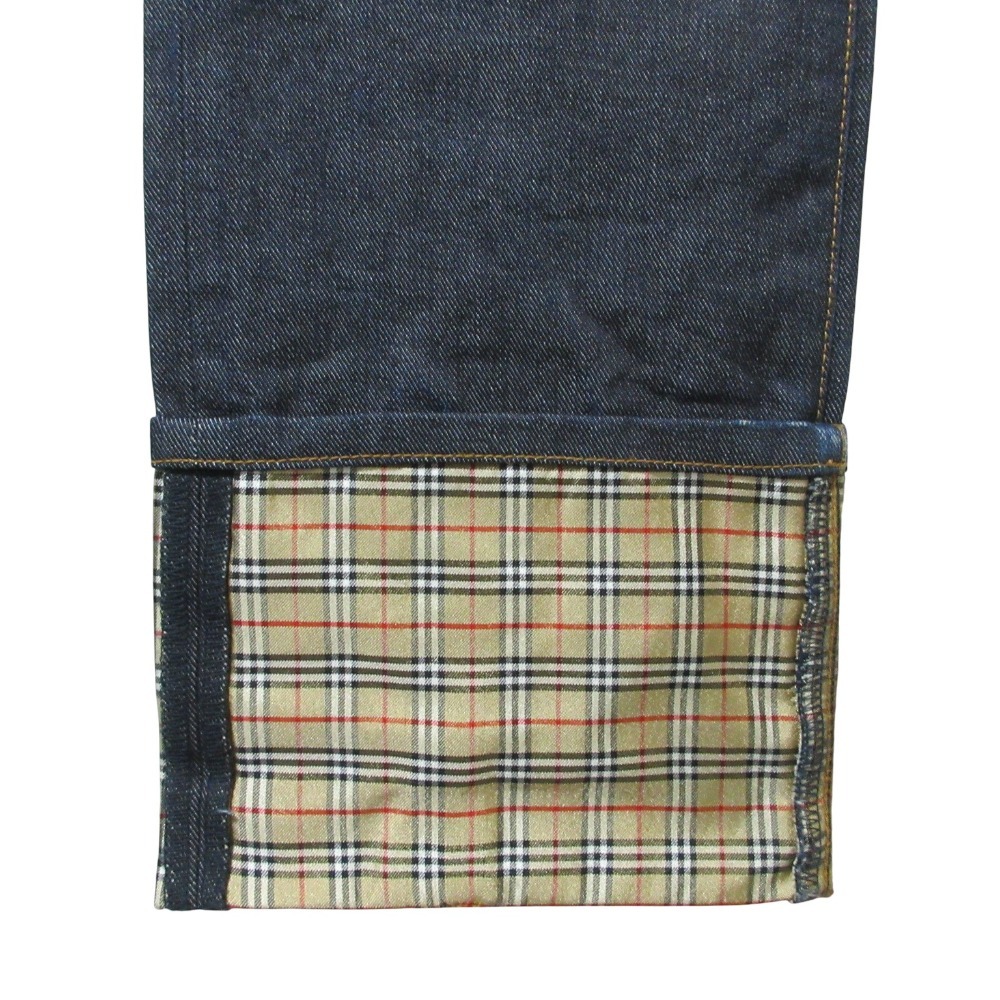 商品名:BURBERRY BLUE LABEL バーバリーブルーレーベル 裾ノバチェック柄 ボタンフライ デニムパンツ ジーンズ W31 インディゴブルー