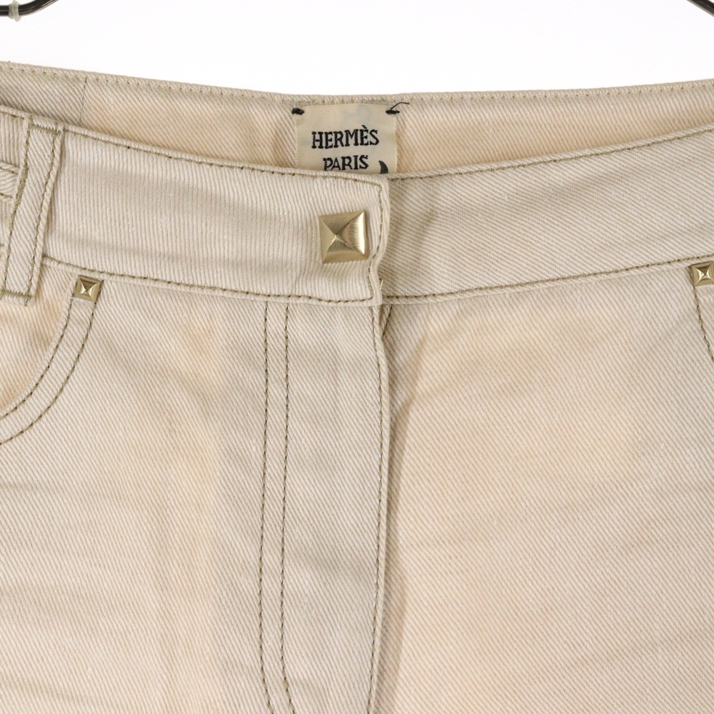 HERMES エルメス メドールボタン Hベルトループ デニム ハーフパンツ クリーム