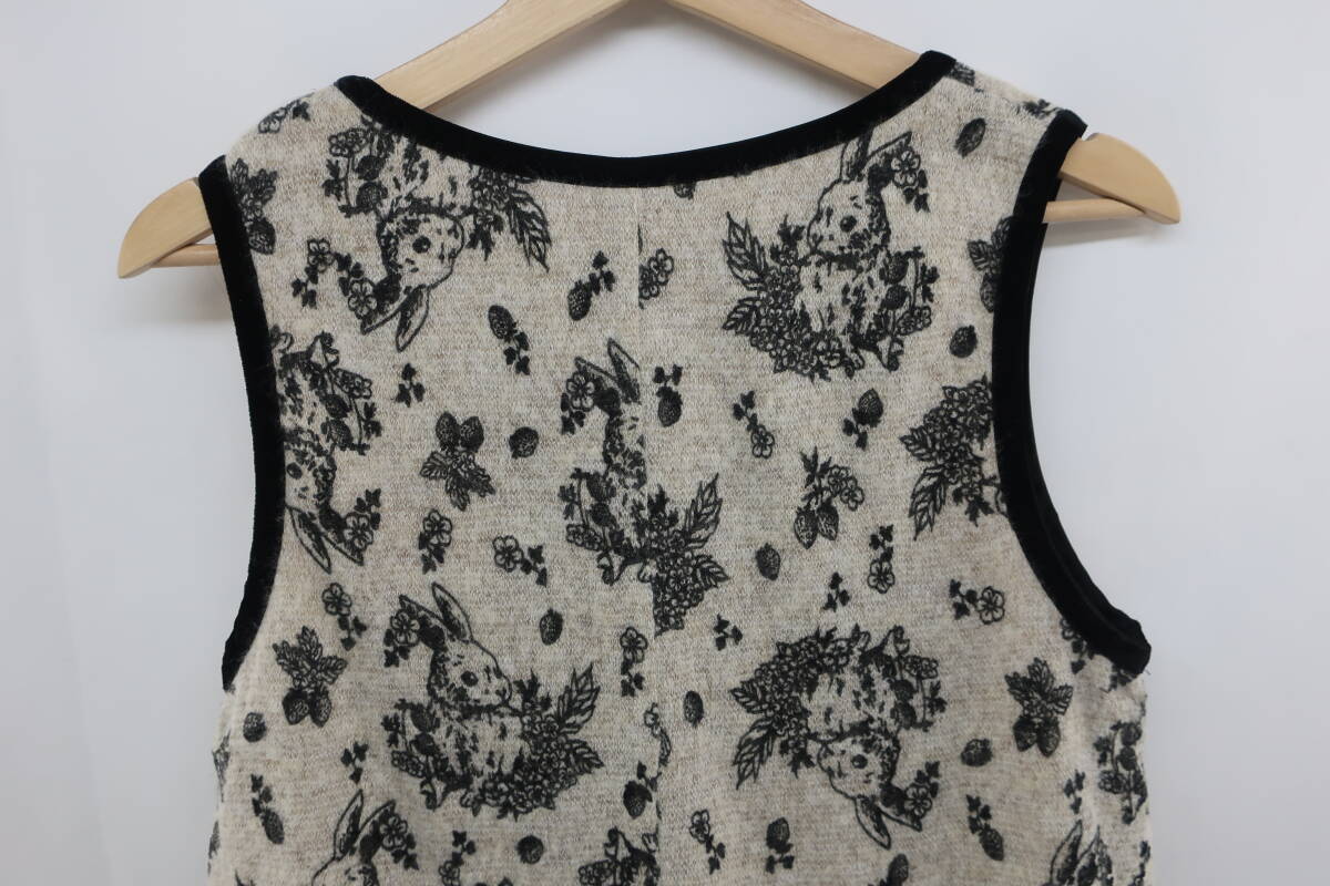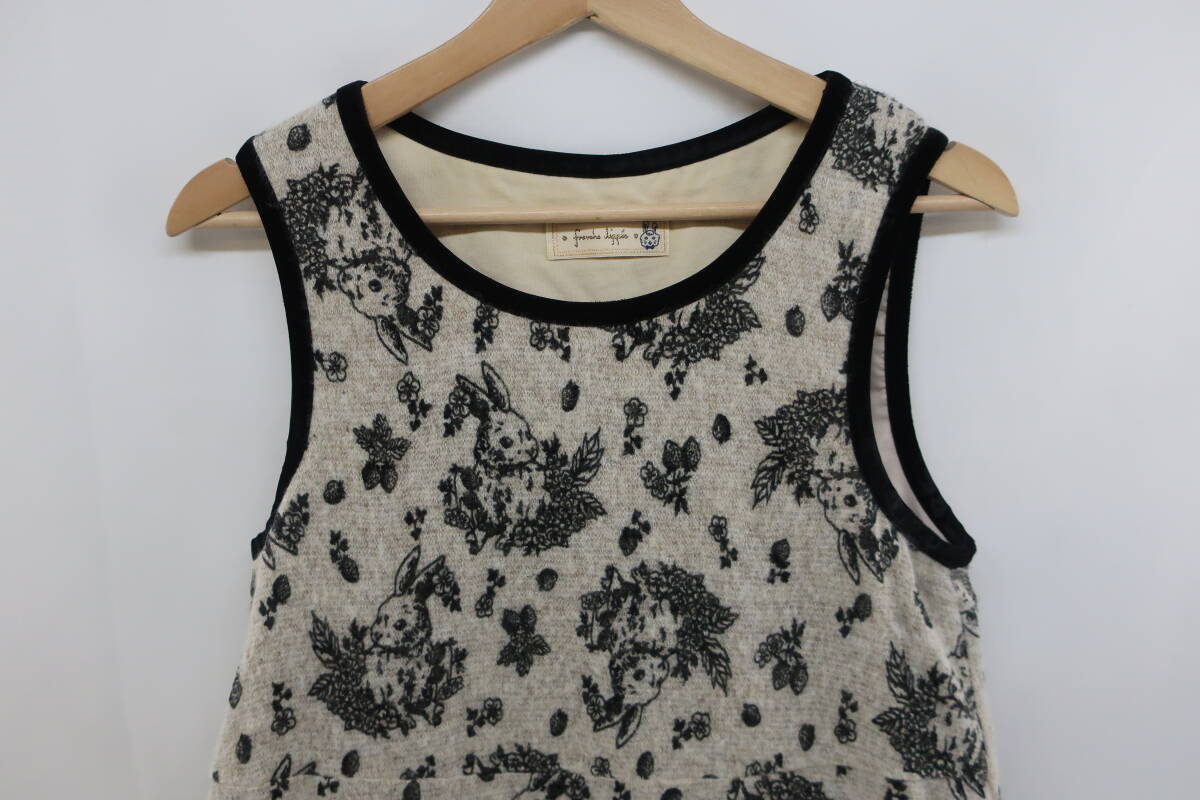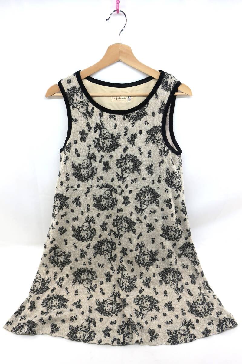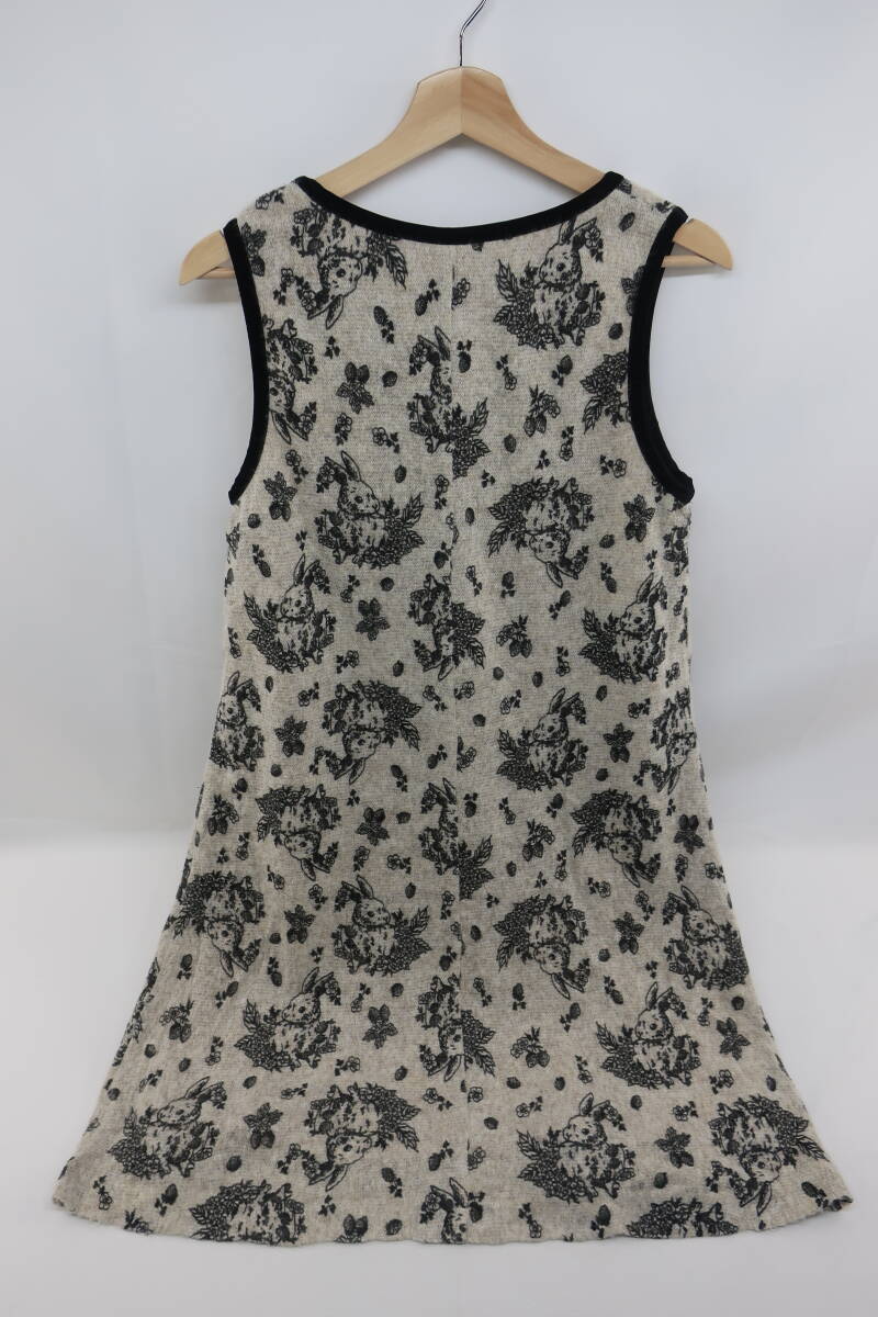 【送900円】2713 franche lippee フランシュリッペ ノースリーブワンピース ラウンドネック 総柄 ウサギ M フロッキー ウール混