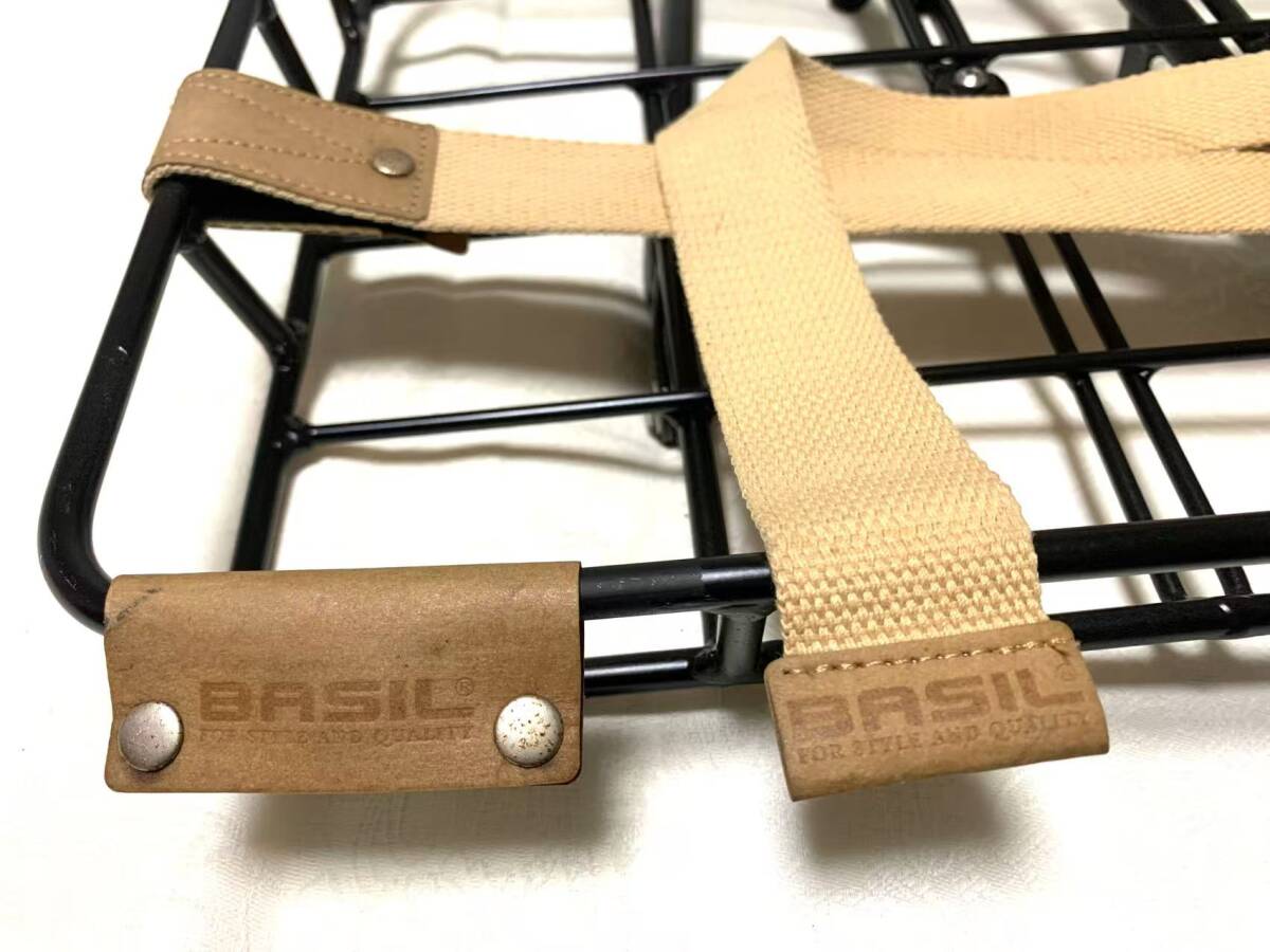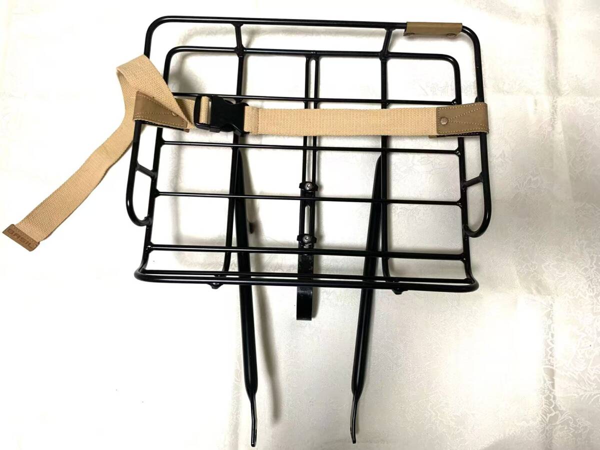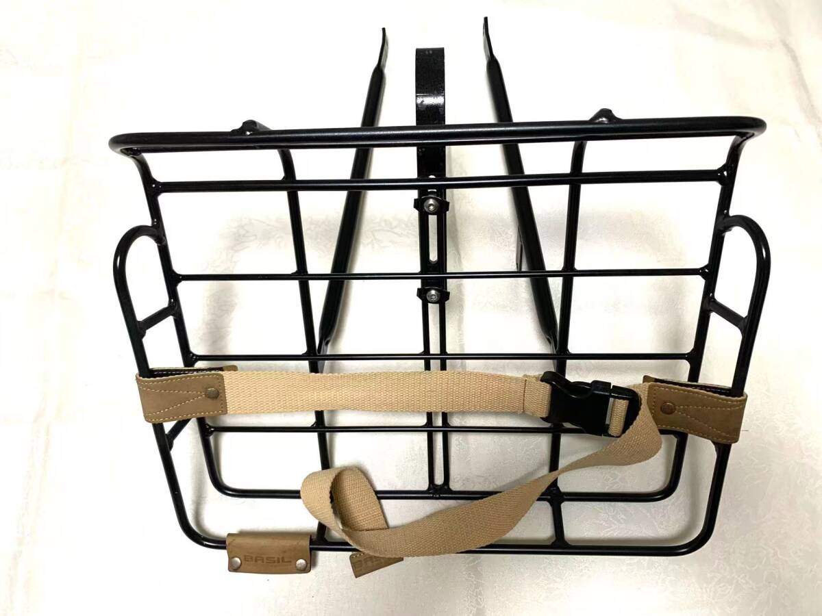BASIL 自転車用フロントバスケット 前かご アルミ風 軽量タイプ ラック 荷台 おしゃれ ストラップ付き ブラック