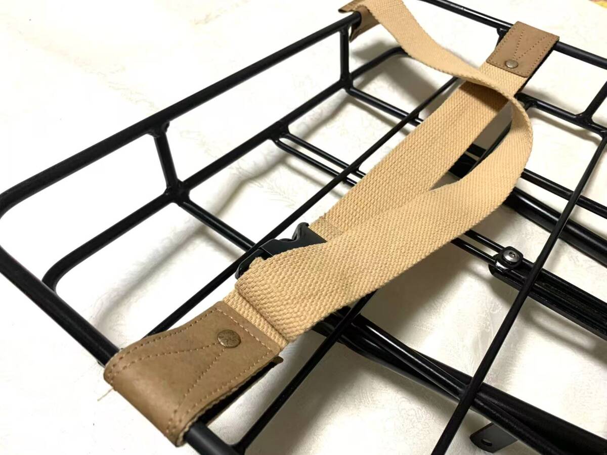 アルミ風のデザインで見た目もスタイリッシュ、ベージュの固定ストラップ付きで荷物のズレを防ぎます。