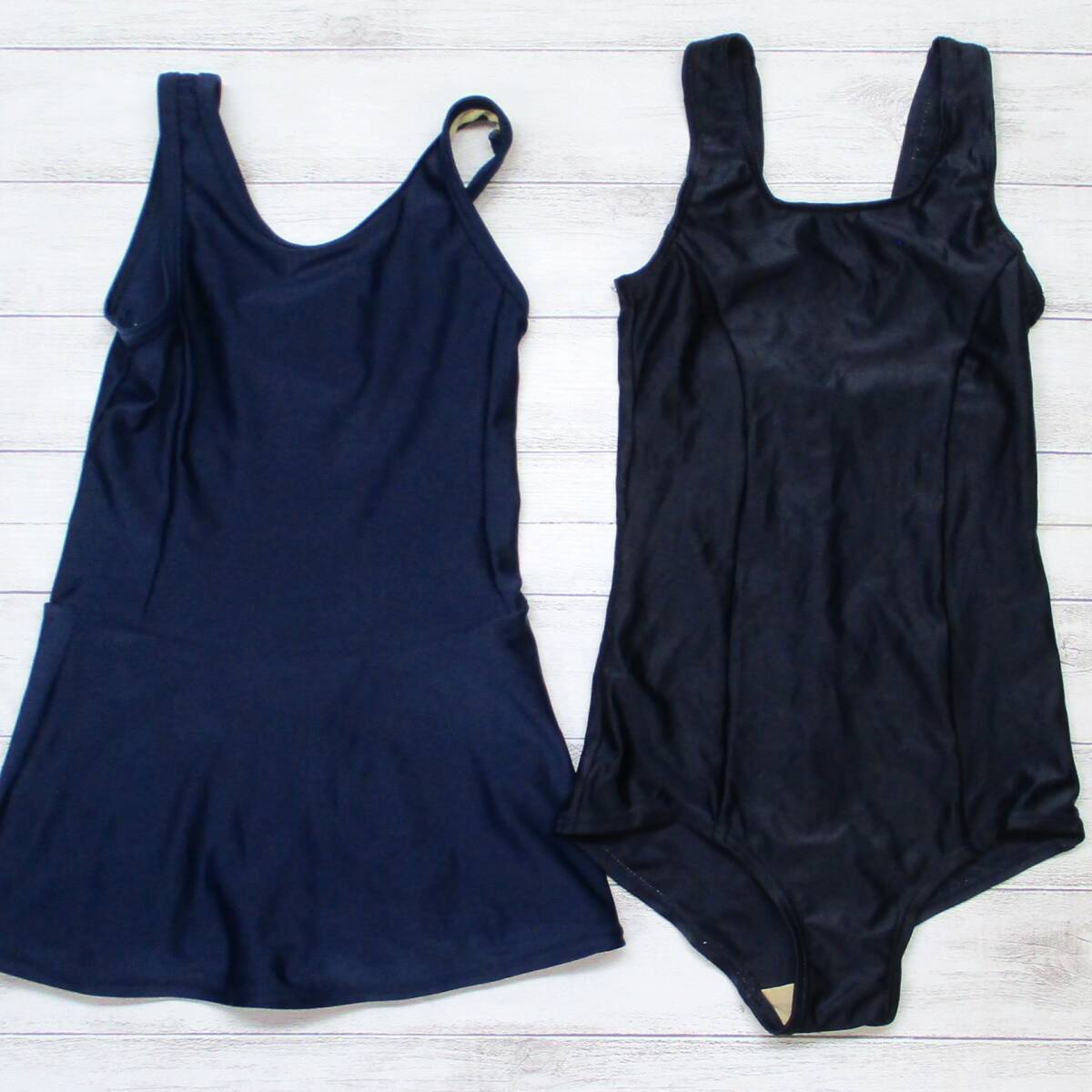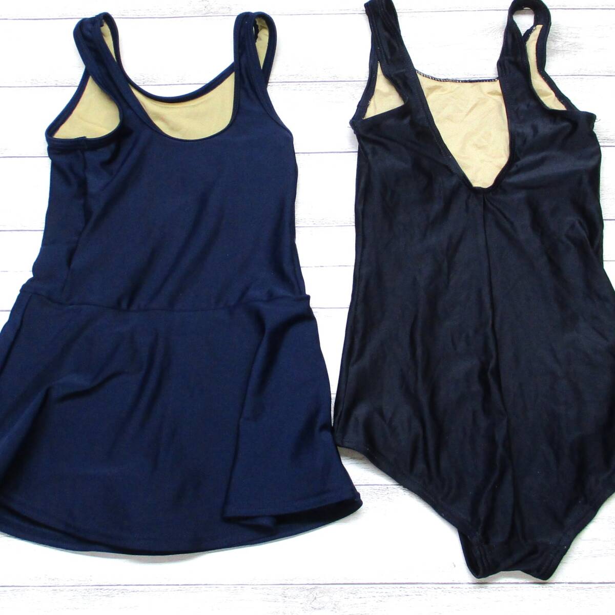 C6292★2枚セット 競泳水着 女子 ジュニア ネイビー 紺黒系 ワンピース 120/130サイズ FOOTMARK スカート つるすべ 無地 かわいい プール