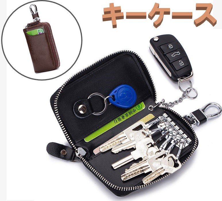 キーケース 本革 ブラウン レザー 鍵入れ 牛革 シンプル レザーキーケース キーリング キーフック n521
