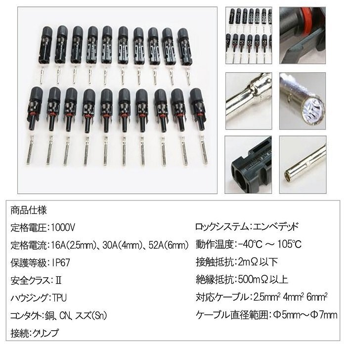 | ワンタッチ 防水 MC4型 コネクタ オス・メス ソーラーパネル接続 |