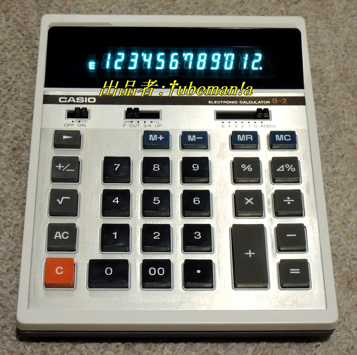 ★カシオ電卓S-3★昭和レトロな蛍光表示管式(VFD)★12桁★たぶん未使用の美品・動作確認済★事務計算用★