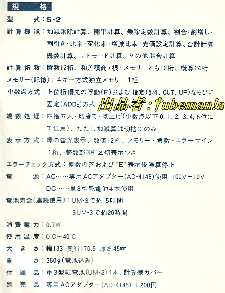 カシオの電卓S-3のたぶん未使用の美品で動作確認済です。
