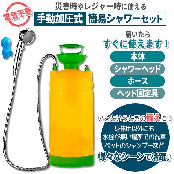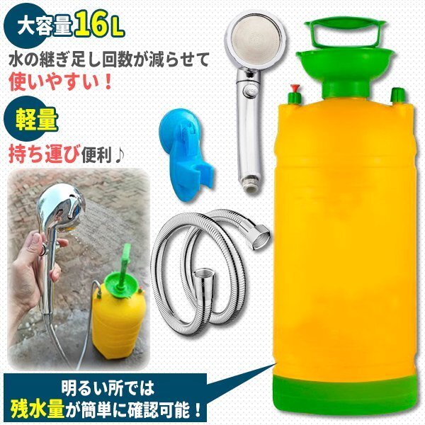 簡易シャワー ポータブルシャワー 16L 大容量 持ち運び用 アウトドア キャンプ 洗車 海水浴 海 サーフィン ペット 防災 断水