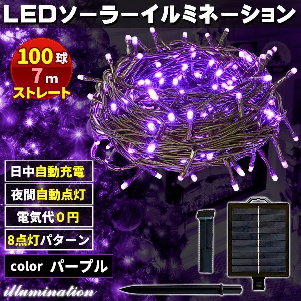ソーラー イルミネーション 屋外 クリスマス ストレート 屋外用 イルミネーションライト 100球 パープル