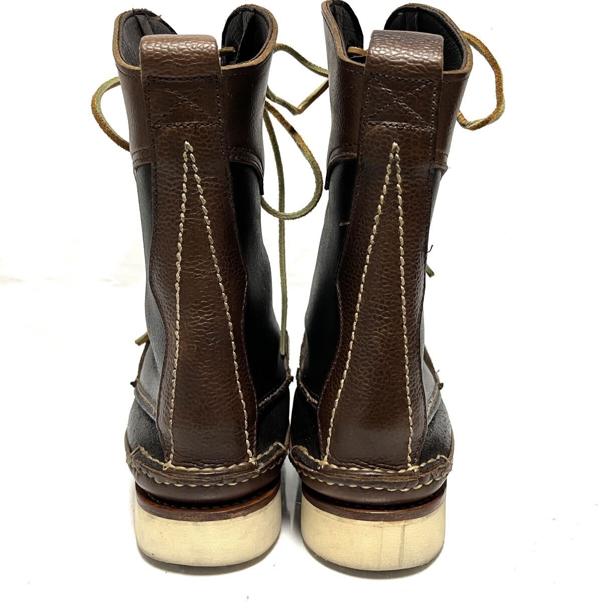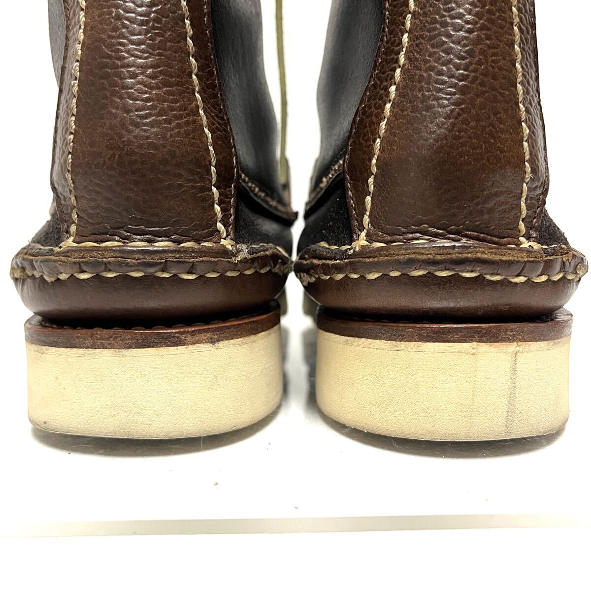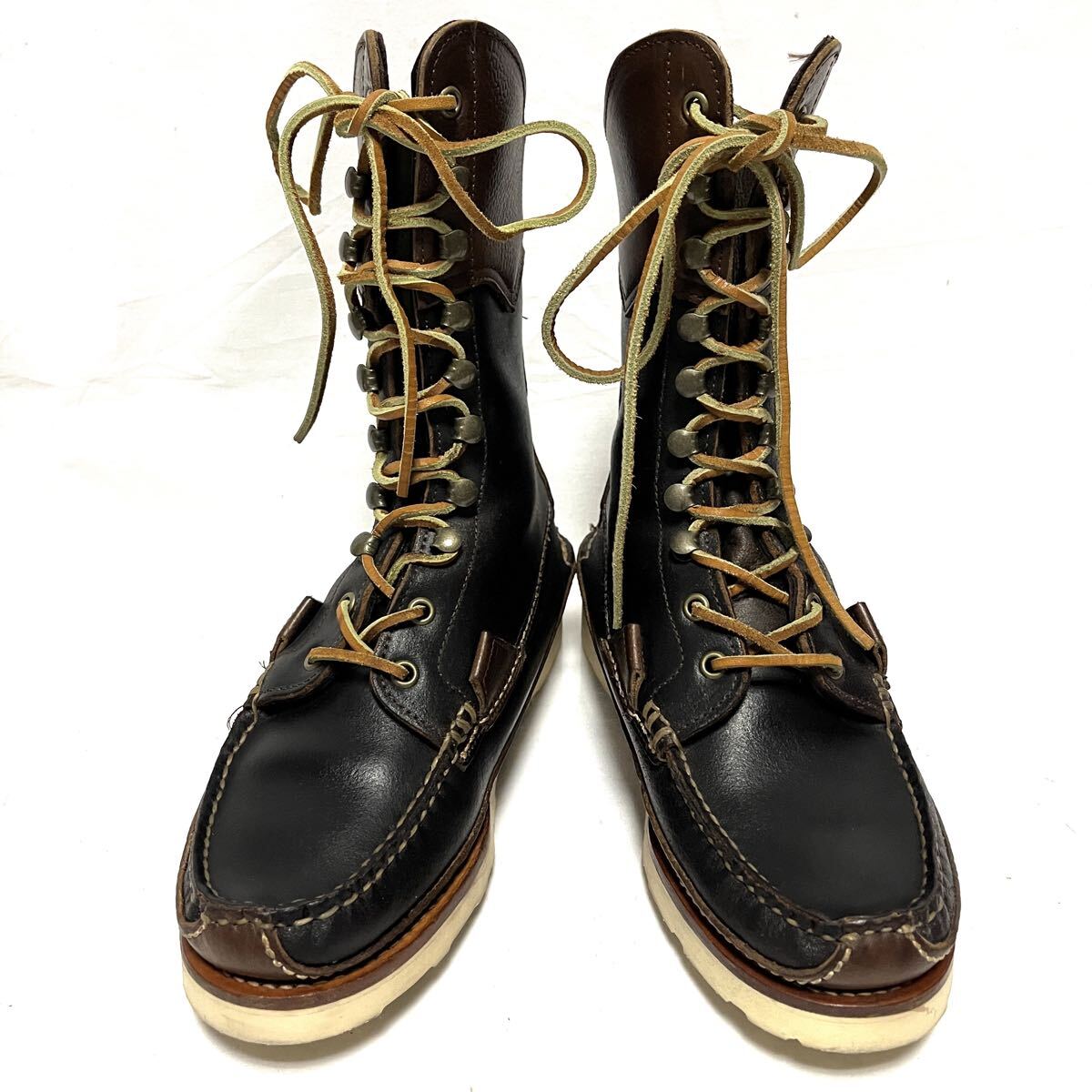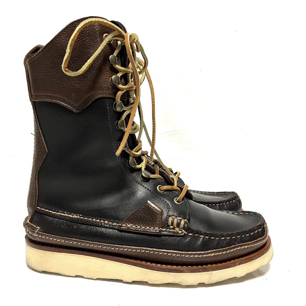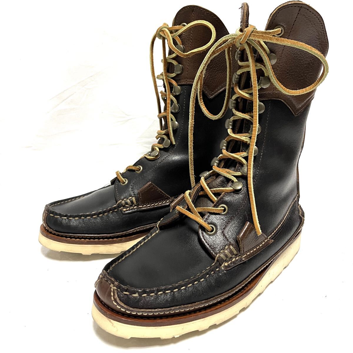 ★美品★YUKETEN ユケテン★MAINE GUIDE BOOTS★メインガイド レザーブーツ★24.5〜25cm★黒 茶 ブラックブラウン★バイカラー ツートン ツートーン★メンズ レディース★ビブラムソール★レースアップ 編み上げ★MADE IN USA 米国製 アメリカ★10ホール★MAINE GUIDE BOOTS★