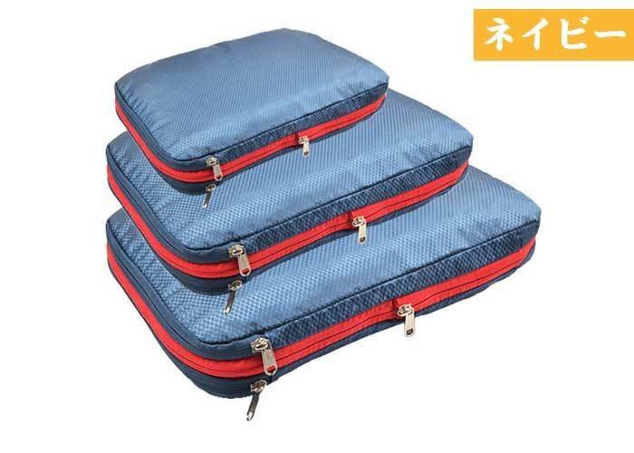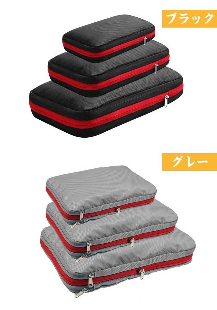 【機能】ファスナーを使って、簡単に圧縮します!衣類を圧縮バッグに入れた後、圧縮ジッパーを閉じることによって、服スペースが約50%が節約できます。3つのパッケージがあり、きれいな服と汚れた服を分けて収納することができます。スーツケースにきれいな服と汚れた服を混ぜることを避けます。