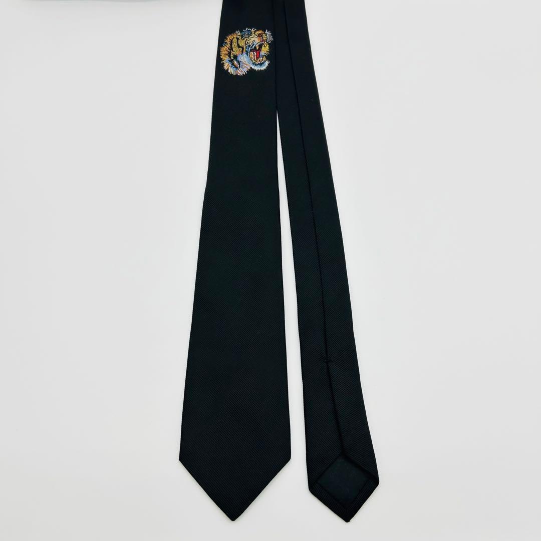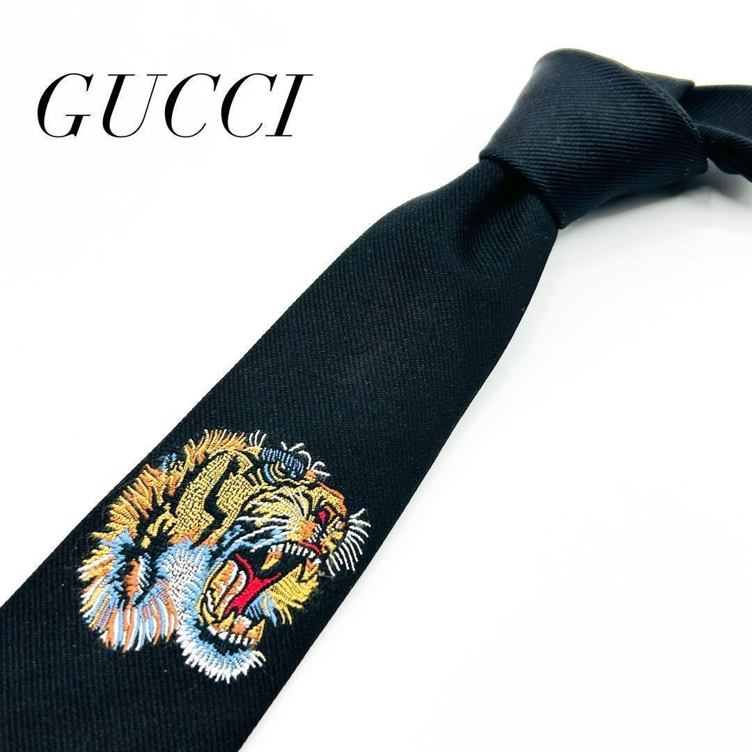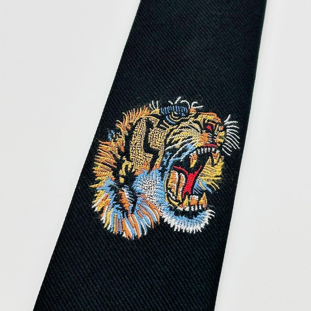 1円 美品 GUCCI グッチ トラ 虎 刺繍 高級シルク 蜂 ハチ 現行タグ ネクタイ メンズ ビジネス プレゼント クリスマス 結婚式 パーティー