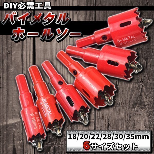 バイメタルホールソー ホルソー セット 工具 穴あけ 18 20 22 28 30 35mmセット ドリル 穴あけ ビット ステンレス 金属 用 木工