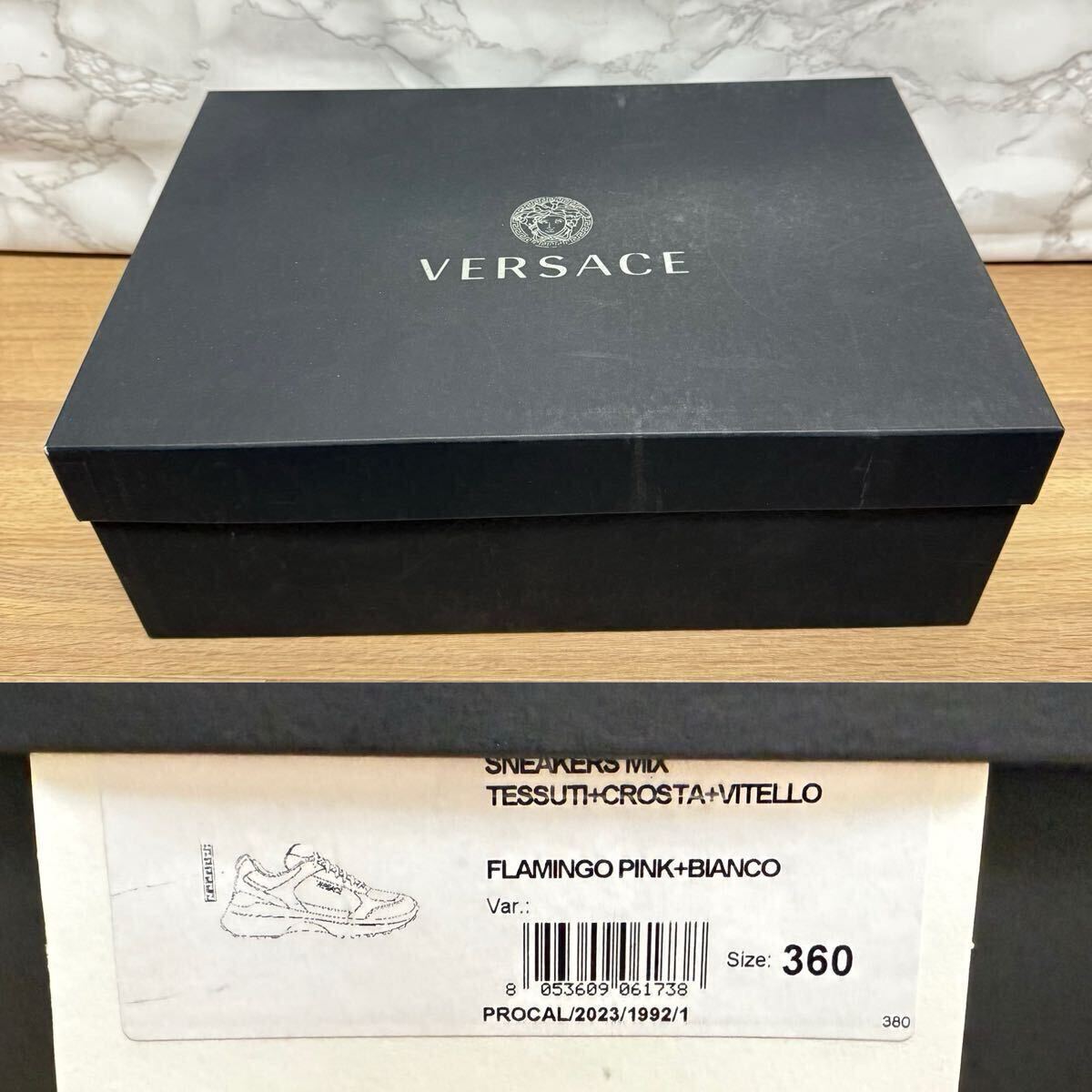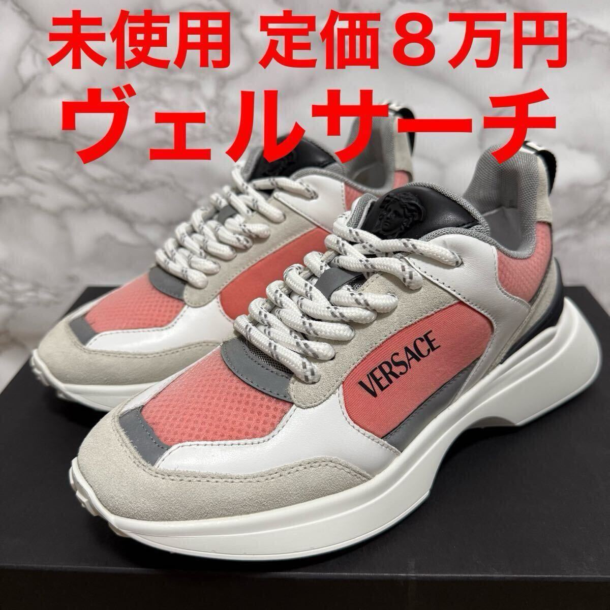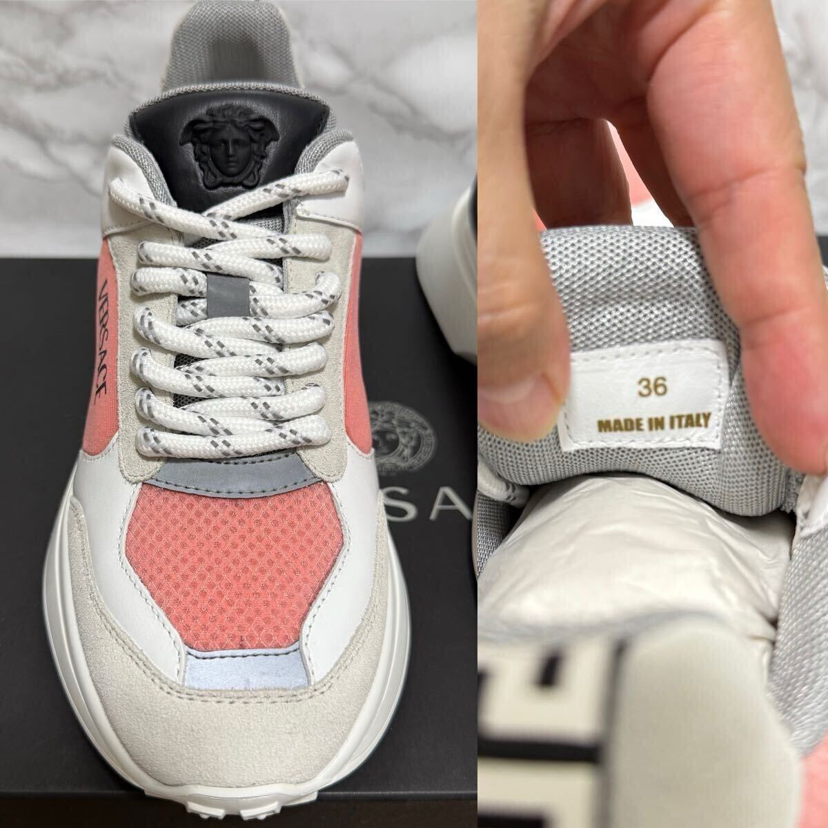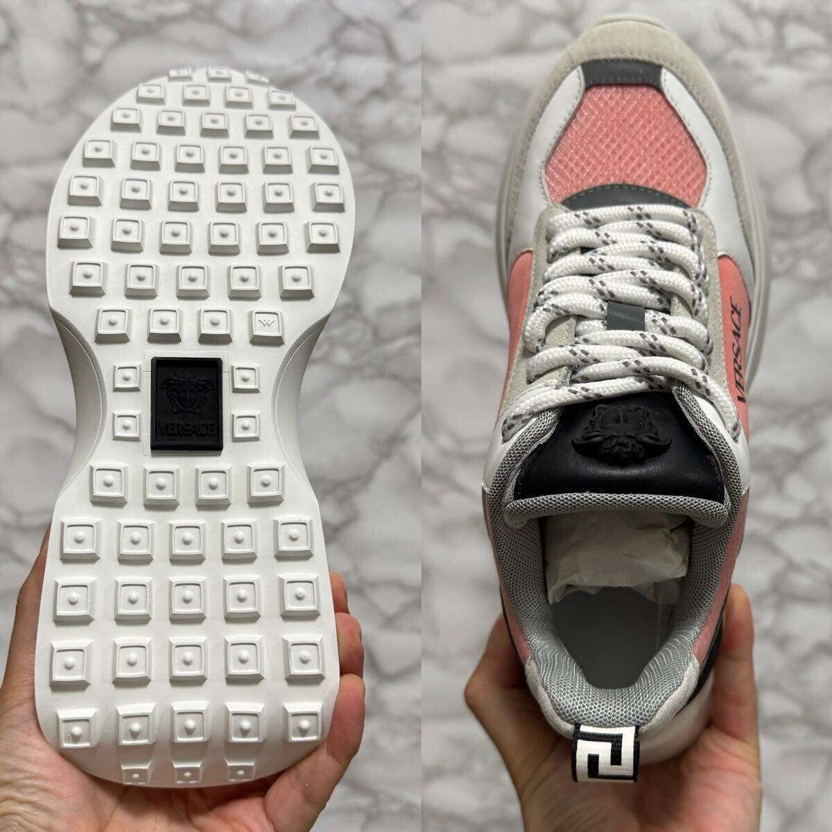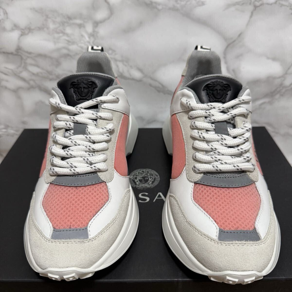 ヴェルサーチ VERSACE 未使用 スニーカー ホワイト グレー フラミンゴピンク ビアンコ メデューサ ロゴ サイズ36