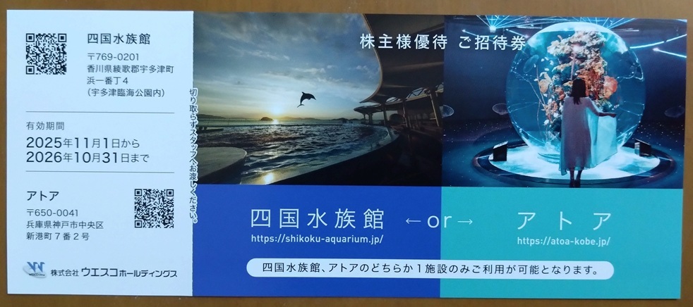 ウエスコ 株主優待 四国水族館 アトア